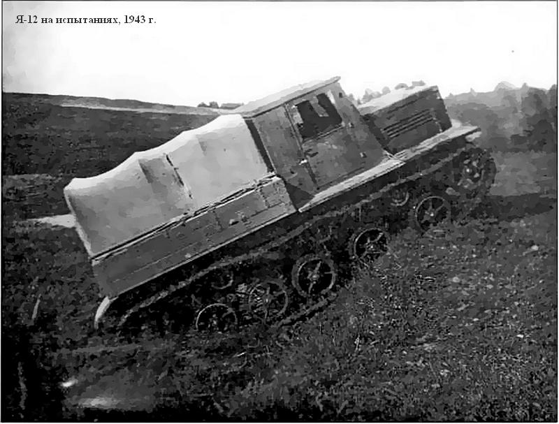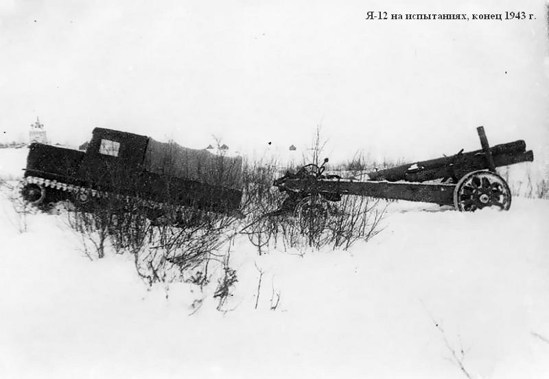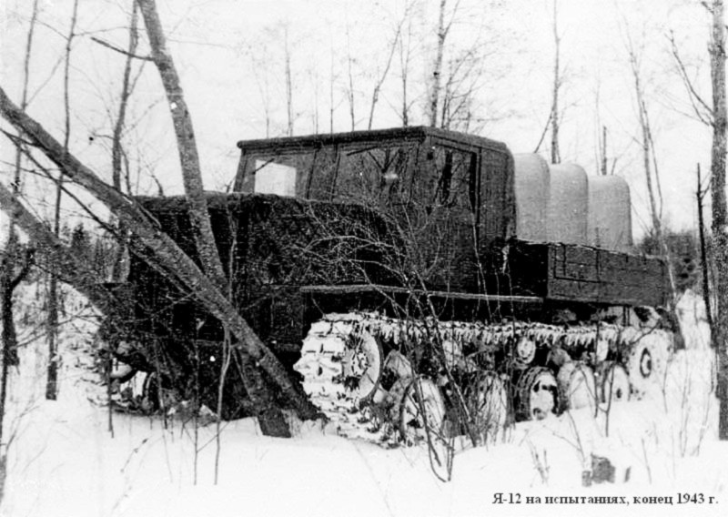 Внешних препятствий для ее быстрого освоения уже не оставалось, что и позволило выпустить в сентябре первую партию Я-12 для проведения фронтовых испытаний, по сути совмещенных с государственными. Кроме того, осенью 1943 года один тягач проходил испытания в Кубинке. Здесь, как и в войсках, все Я-12 продемонстрировали вполне удовлетворительную надежность, хорошую динамику, достаточную плавность хода, высокую максимальную скорость, удобство управления. Неплохая для машин такого весового класса тяга по грунту позволяла уверенно буксировать 85-мм зенитные пушки 52К, 122-мм корпусные орудия А-19, 152-мм гаубицы-пушки МЛ-20 и даже 203-мм тяжелые гаубицы Б-4. Впоследствии высокая подвижность частей корпусной артиллерии, оснащенных быстроходными тягачами Я-12, давала возможность при проведении наступательных операций 1944 года вводить их в прорыв вместе с танками и мотопехотой.