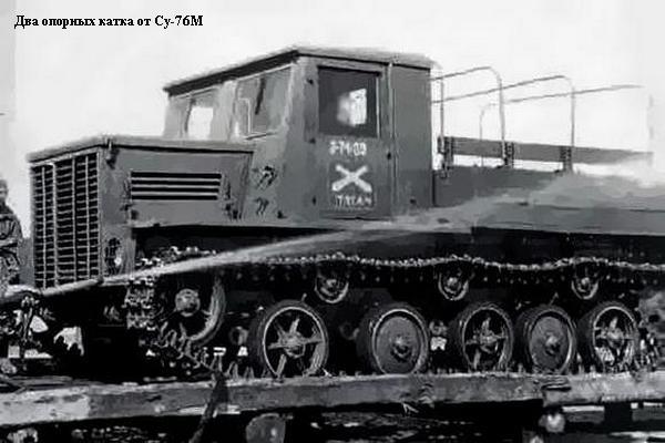 Прим. На фото с испытаний весной-летом 1943 г. на Я-11 установлена такая (уменьшенная) платформа и опорные катки от Су-76М.