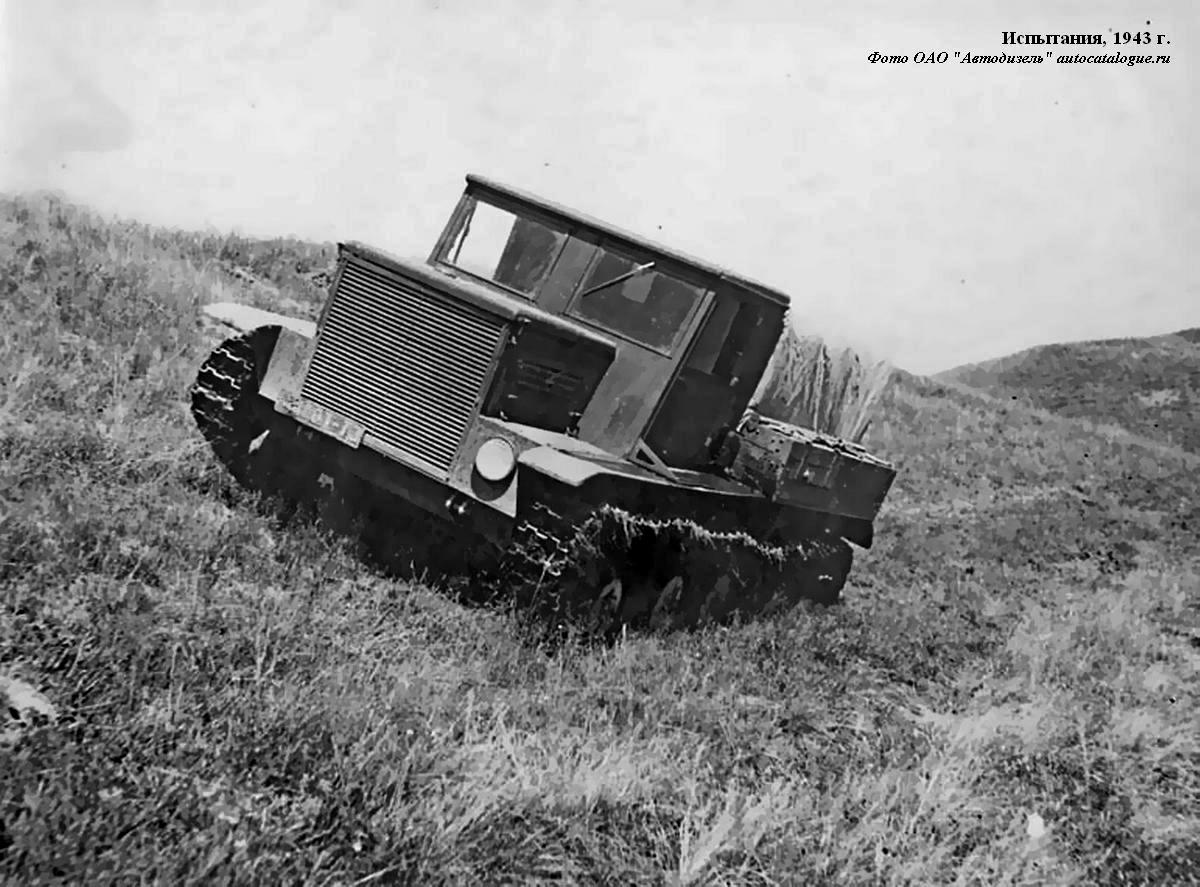 В конце августа 1942 года тягач "Д" был построен на заводе опытных конструкций НАТИ. Осенью он прошел кратковременные испытания, показавшие, несмотря на ряд серьезных недостатков, его удовлетворительную работоспособность и в целом соответствие предъявленным требованиям. Ввиду острой нужды армии в тягачах Наркомат среднего машиностроения (НКСМ) принял решение о доработке тягача и организации его производства на Ярославском автозаводе (ЯГАЗ). Это предприятие имело достаточное количество зуборезного, расточного и универсального станочного оборудования, вполне соответствующего технологии и масштабам намечаемого мелкосерийного производства, к тому же менее других автозаводов было загружено выпуском военной продукции, особенно непрофильной. И главное - на заводе имелось достаточное количество квалифицированных кадров, хорошо знакомых со спецификой транспортного машиностроения.