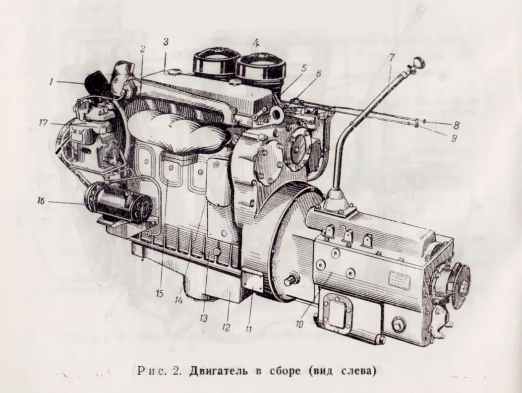 В маслосистеме также применялась двойная очистка (двигатель ГАЗ-М вообще не имел маслофильтров). К сожалению, у нового двигателя отсутствовал дублирующий запуск - только электростартером при наличии хорошо заряженной аккумуляторной батареи емкостью не менее 128 А•ч. Вручную, как это можно было делать на Я-11, он не заводился. Для облегчения запуска при температуре до - 6°С мог применяться смонтированный на двигателе факельный подогреватель всасываемого воздуха с запальной свечой, но при более низкой температуре он был неэффективен. Доступ к двигателю обеспечивали подъемный капот аллигаторного типа и съемные боковины.