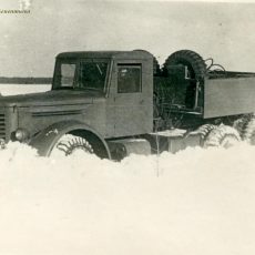 … самое интересное - лебедка. На основании анализа всех имеющихся данных с уверенностью можно сделать вывод о том, что на ранних тягачах ЯАЗ-210Г устанавливались импортные американские тяговые лебедки, а когда их запас уже в 1952 г. был исчерпан (всего ими удалось оснастить не более двух десятков «210Г»), от лебедок попросту отказались. Сложности в их освоении отечественной промышленностью в общем-то не было, но все дело здесь заключалось в назначении. Как правило, такие лебедки в армейской эксплуатации предназначались для затаскивания поврежденной бронетанковой техники на бускируемые низкорамные прицепы-тяжеловозы (именно для этого они устанавливались на тех же «Даймондах»). Однако ввиду ограничения грузоподъемности таких прицепов для ЯАЗ-210Г на грунте до 25 т, они мог перевозить разве что легкие танки и САУ типа СУ-76М, поскольку средние и тяжелые танки, появившиеся в конце войны, значительно превышали указанную массу. Другой областью применения тяговых лебедок на балластных тягачах было раздельное преодоление особо тяжелых участков: автомобиль расцеплялся с прицепом-тяжеловозом; преодолевал крутой подъем, заболоченность, глубокие колеи и т.п.; после чего подтягивал с помощью лебедки прицеп с грузом. Однако в этом случае не полноприводный балластный тягач являлся не самым лучшим решением проблемы. Еще одним назначением лебедки могло быть использование ее для самовытаскивания автомобиля, но опять же, ввиду колесной формулы 6x4 оно и здесь оказывалось мало применимым. Поэтому даже образцы ЯАЗ-210Г, предоставленные для Государственных испытаний, уже не имели лебедок (как и отверстий с левой стороны бампера), а на их месте были размещены закрытые металлические ящики.