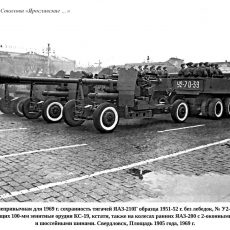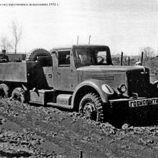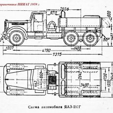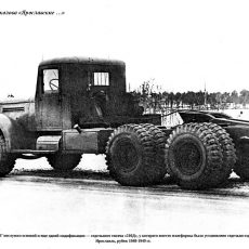 Впрочем, в выходившей в те годы справочной литературе все вышеизложенное практически никак не отражалось. Если тот факт, что с 1952 г. тягачи выпускались без лебедок, хоть изредка, но все же озвучивался, то параметры грузоподъемности (а зачастую и мощность двигателя) в справочниках по-прежнему перепечатывались с данных опытного образца, да и о полной массе буксируемого прицепа для ЯАЗ-210Г как правило умалчивали.