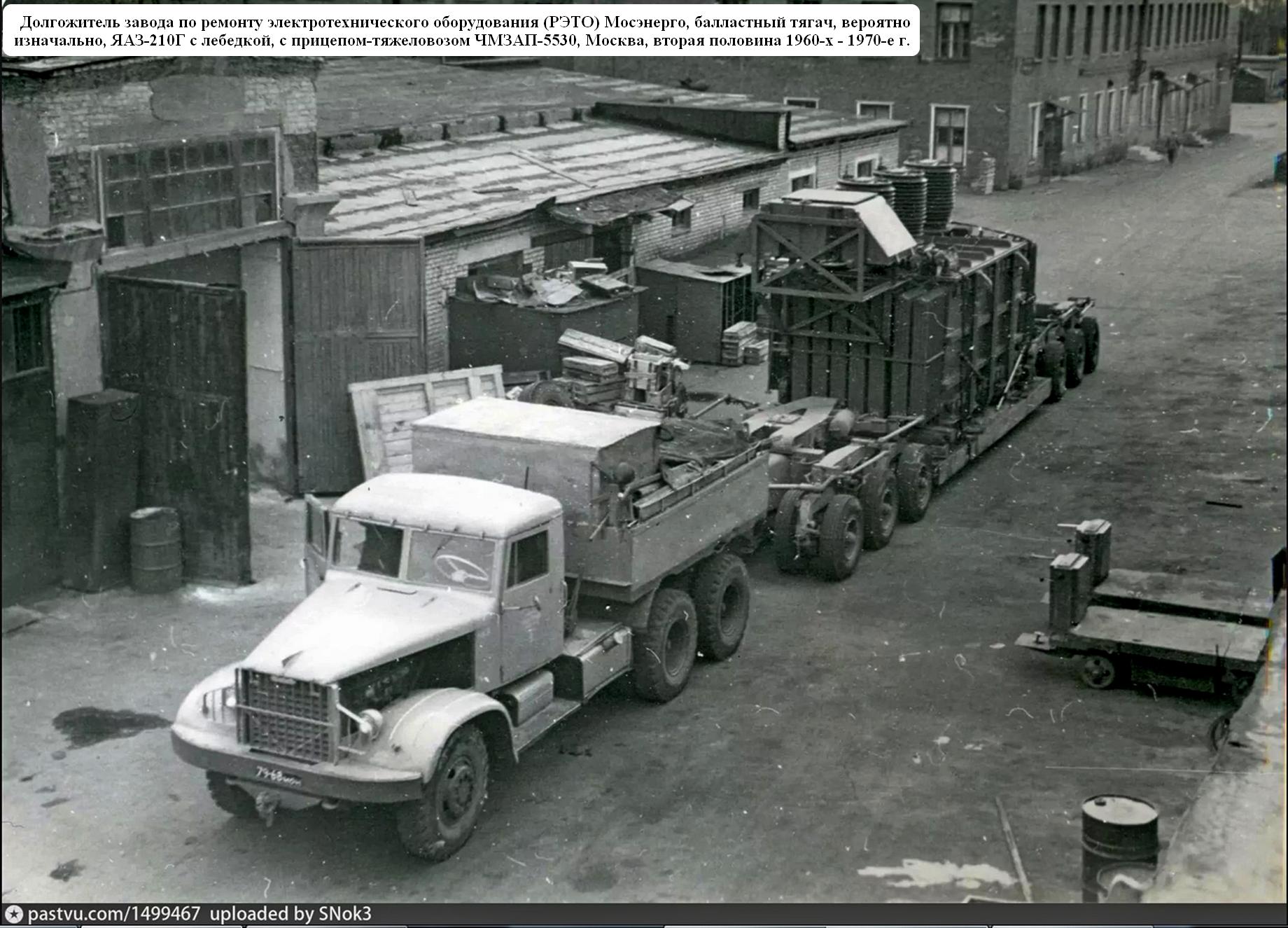 … с поступлением в воинские части модернизированных ЯАЗ-210Г с универсальными платформами, экземпляры прежнего исполнения стали отправлять в народное хозяйство, где они начинали довольно успешно применяться для транспортировки тяжелых неделимых грузов. Надо сказать, что требования к ним «на гражданке» отличались от армейских и гражданским они удовлетворяли больше. Здесь как раз-таки была нужна платформа для балласта, груза или вспомогательного оборудования, да и наличие мощной лебедки (если имелась) весьма ценилось. Для того чтобы перевезти башенный кран или отбуксировать тяжелый пневмоколесный кран, балластный тягач был просто незаменим. В этой области у ЯАЗ-210Г не было ни конкурентов, ни последующей равноценной замены.