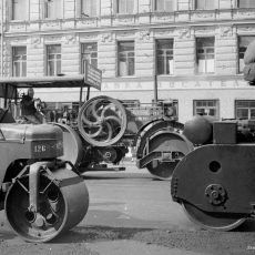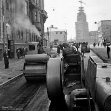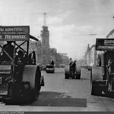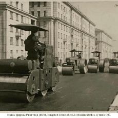 На рубеже 1940-50-х г. эти катки поставлялись в СССР. Судя по фотографиям, они эксплуатировались в Москве и Ленинграде до конца 1950 г. Для катка совсем недолго, похоже, больно мудреная была конструкция. Информации о поставках этих катков в СССР, сведений об их эксплуатации и технических характеристиках не найдено, надеюсь пока…