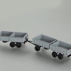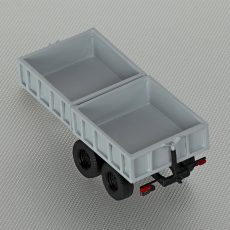 Основные узлы: два металлических взаимозаменяемых самосвальных кузова, задний буксирный прибор, пневмо- и электровыводы для соединения с другим прицепом в составе поезда.
