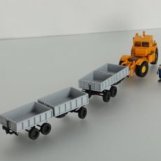 В частности, в СМУ-5 треста «Краснодартрубопроводстрой» Миннефтегазстроя СССР, где в 1978 г. я начинал свой трудовой путь в качестве мастера, К-700А с двумя таким прицепами был нарасхват. Основной его работой были доставка инертных материалов и кирпича. Эффективность его работы была кратно выше, чем у водителей ЗиЛков и ИФА, а заработок машиниста, Степы Косталова, был одним из самых высоких. Правда, для меня он был первый враг потому, что каждый заезд его трактора с двумя прицепами на мой объект сопровождался сносом моих геодезических знаков.