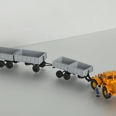 ММЗ-771 (1-ПТС-9) полунавесной 2-осный самосвальный тракторный прицеп грузоподъемностью 9 тонн для перевозки сельскохозяйственных грузов в составе тракторного поезда по всем видам дорог и в полевых условиях, выгрузка боковая, объем кузова: 8.5 м3, с надставками до 17.4 м3, снаряженный вес 4.6 тонн, максимальная скорость до 33 км/час, ЧМЗАТП, г. Челябинск, 1966-72 год выпуска.