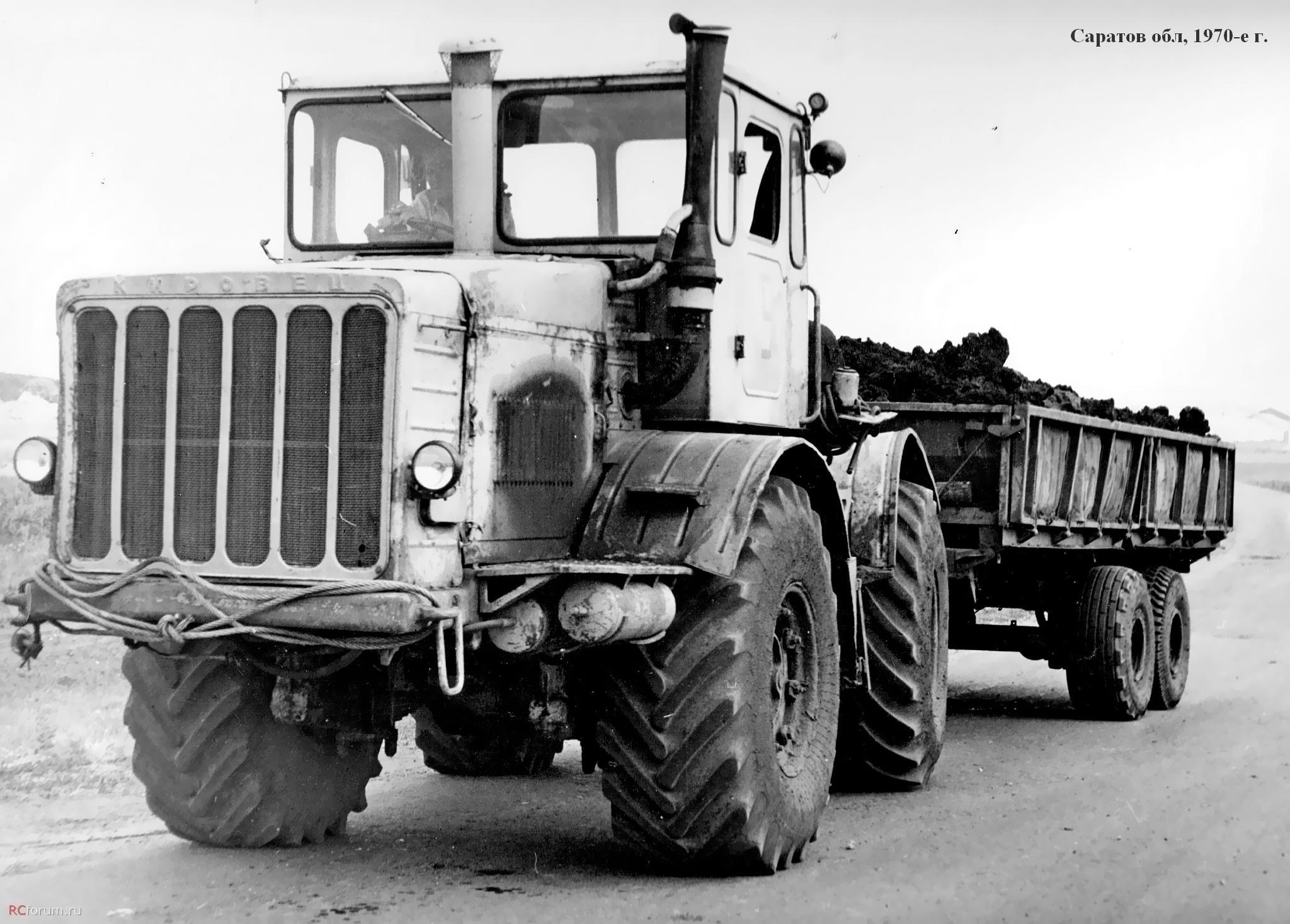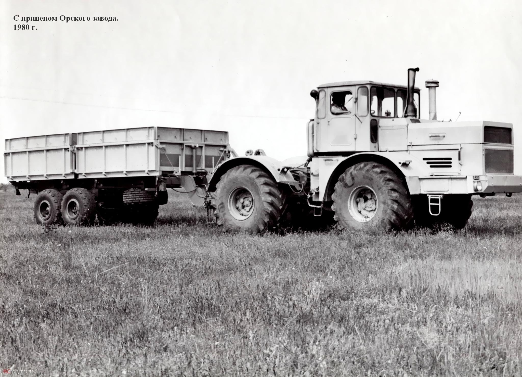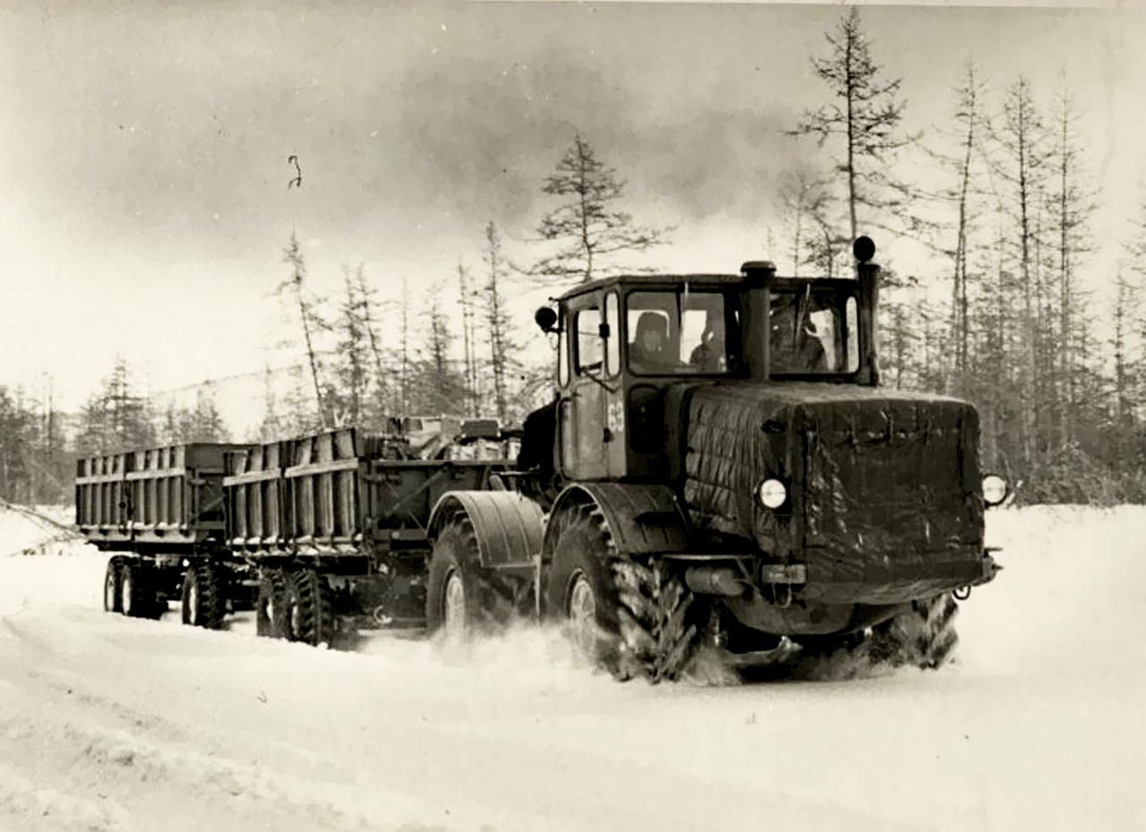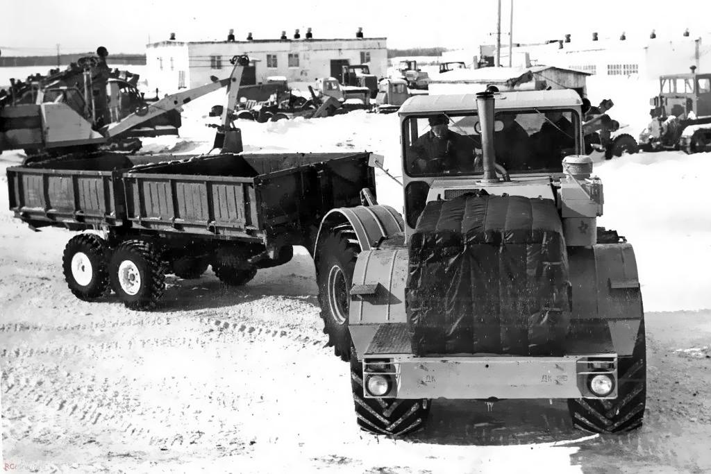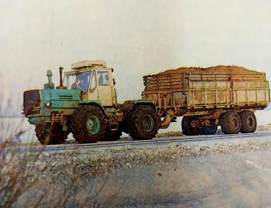 В частности, в СМУ-5 треста «Краснодартрубопроводстрой» Миннефтегазстроя СССР, где в 1978 г. я начинал свой трудовой путь в качестве мастера, К-700А с двумя таким прицепами был нарасхват. Основной его работой были доставка инертных материалов и кирпича. Эффективность его работы была кратно выше, чем у водителей ЗиЛков и ИФА, а заработок машиниста, Степы Косталова, был одним из самых высоких. Правда, для меня он был первый враг потому, что каждый заезд его трактора с двумя прицепами на мой объект сопровождался сносом моих геодезических знаков.