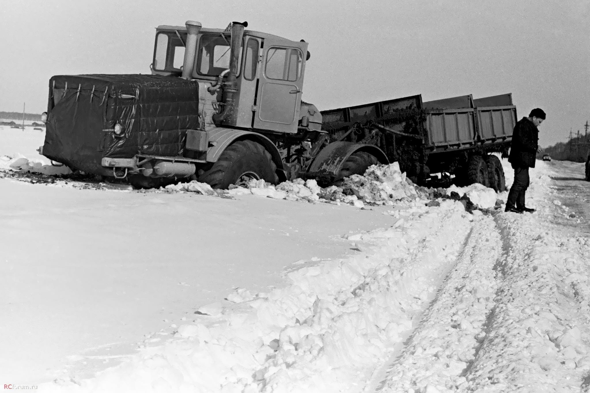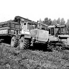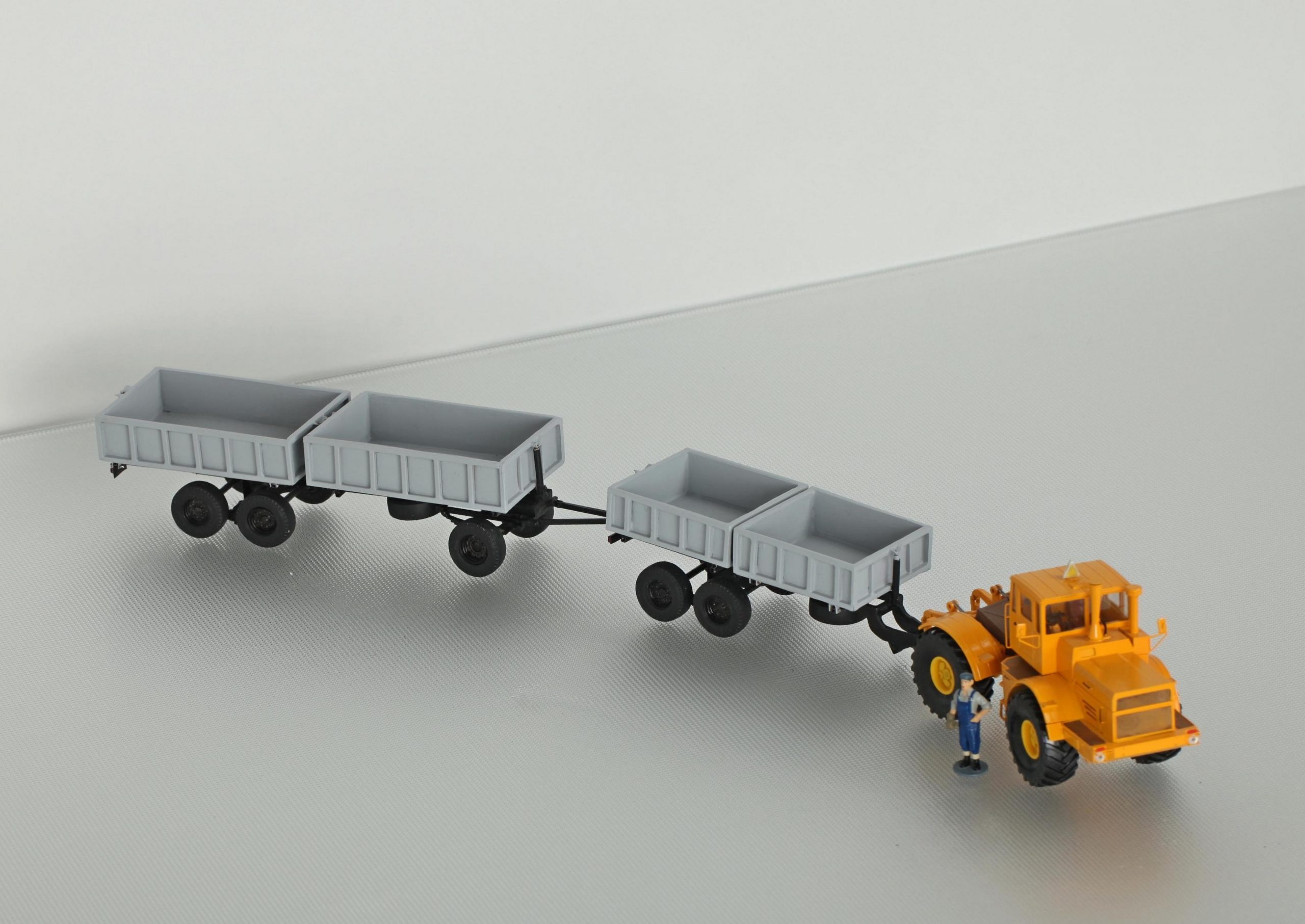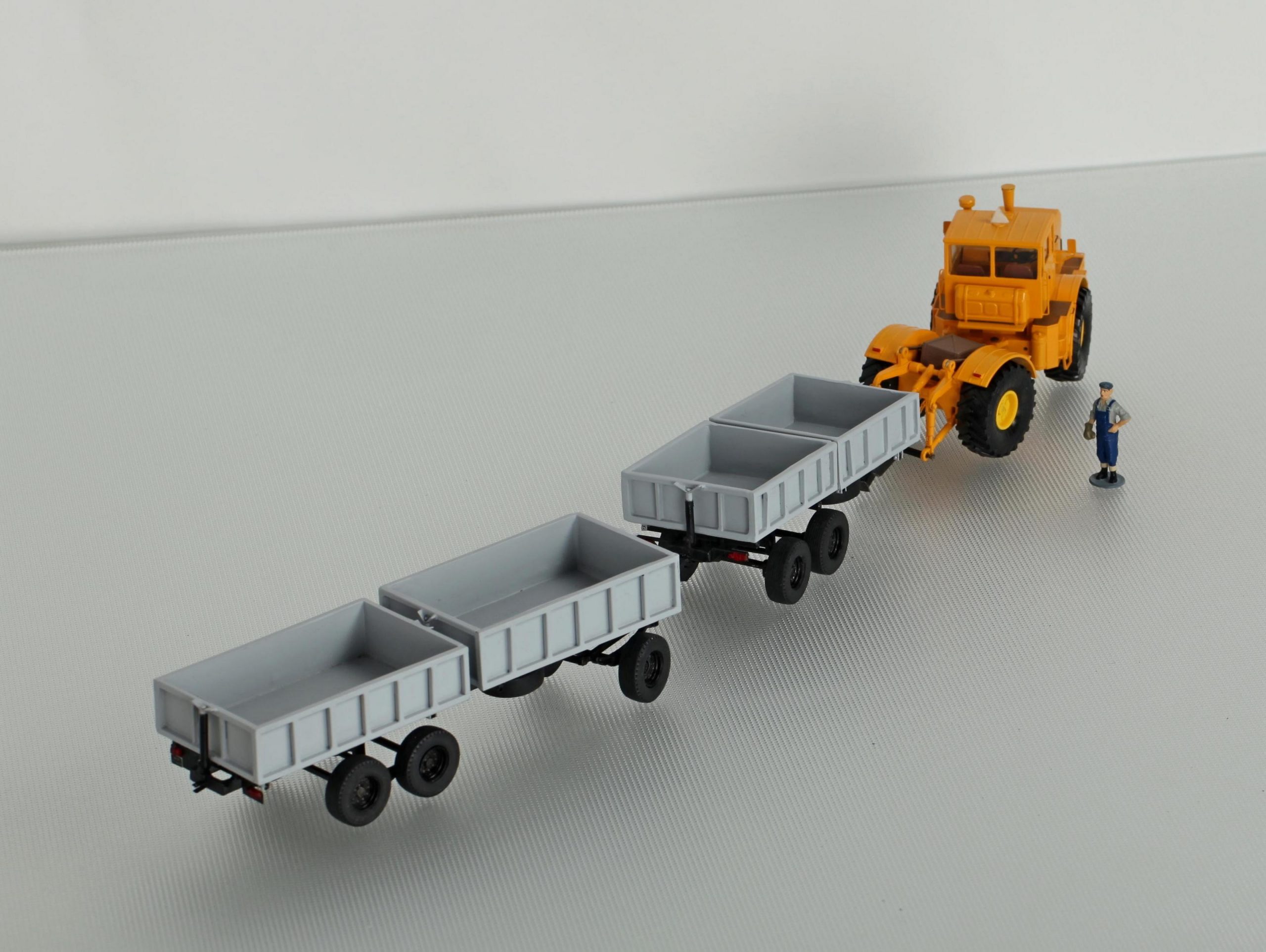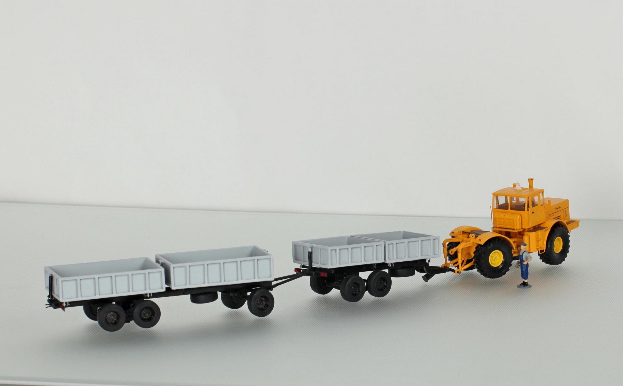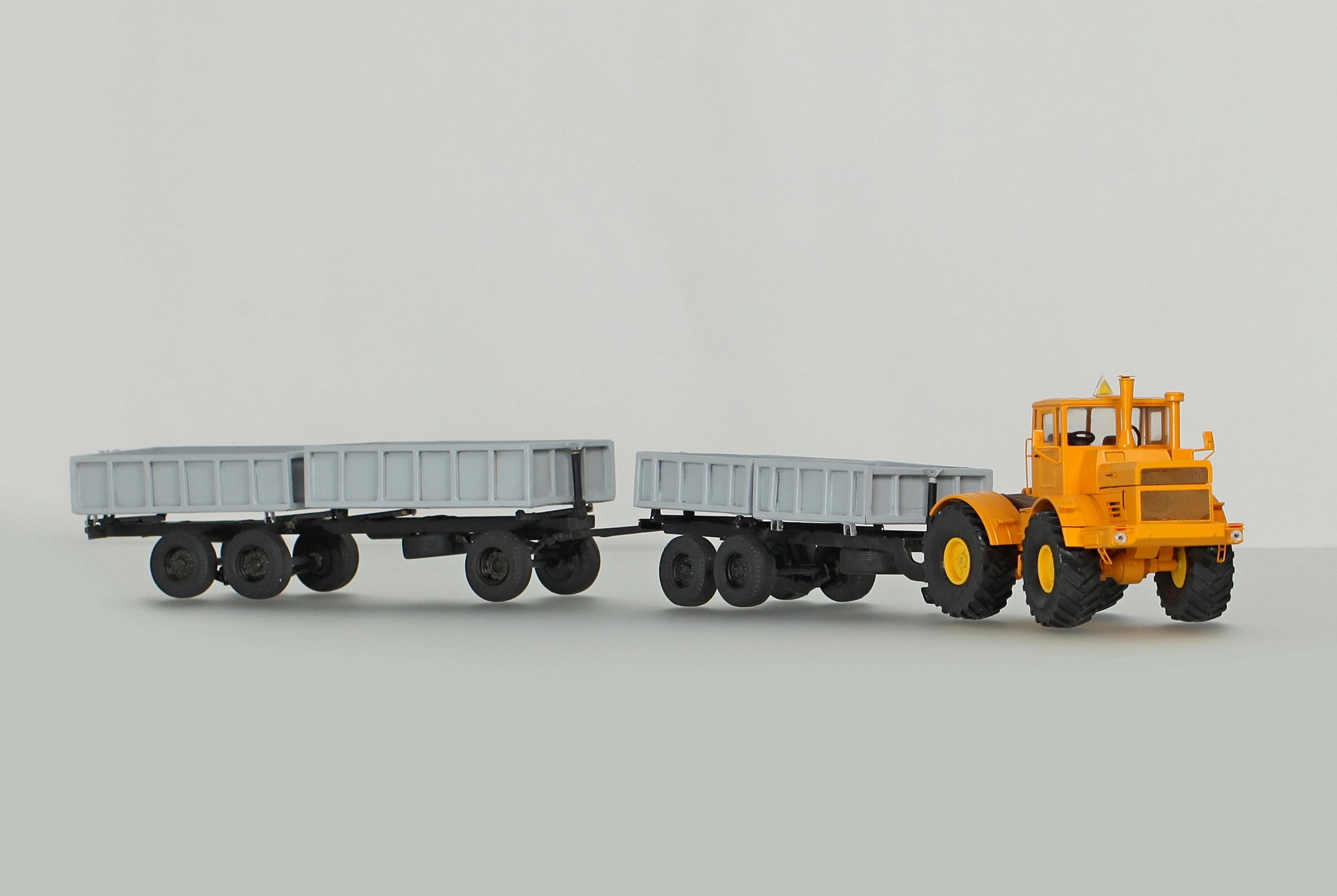 В частности, в СМУ-5 треста «Краснодартрубопроводстрой» Миннефтегазстроя СССР, где в 1978 г. я начинал свой трудовой путь в качестве мастера, К-700А с двумя таким прицепами был нарасхват. Основной его работой были доставка инертных материалов и кирпича. Эффективность его работы была кратно выше, чем у водителей ЗиЛков и ИФА, а заработок машиниста, Степы Косталова, был одним из самых высоких. Правда, для меня он был первый враг потому, что каждый заезд его трактора с двумя прицепами на мой объект сопровождался сносом моих геодезических знаков.