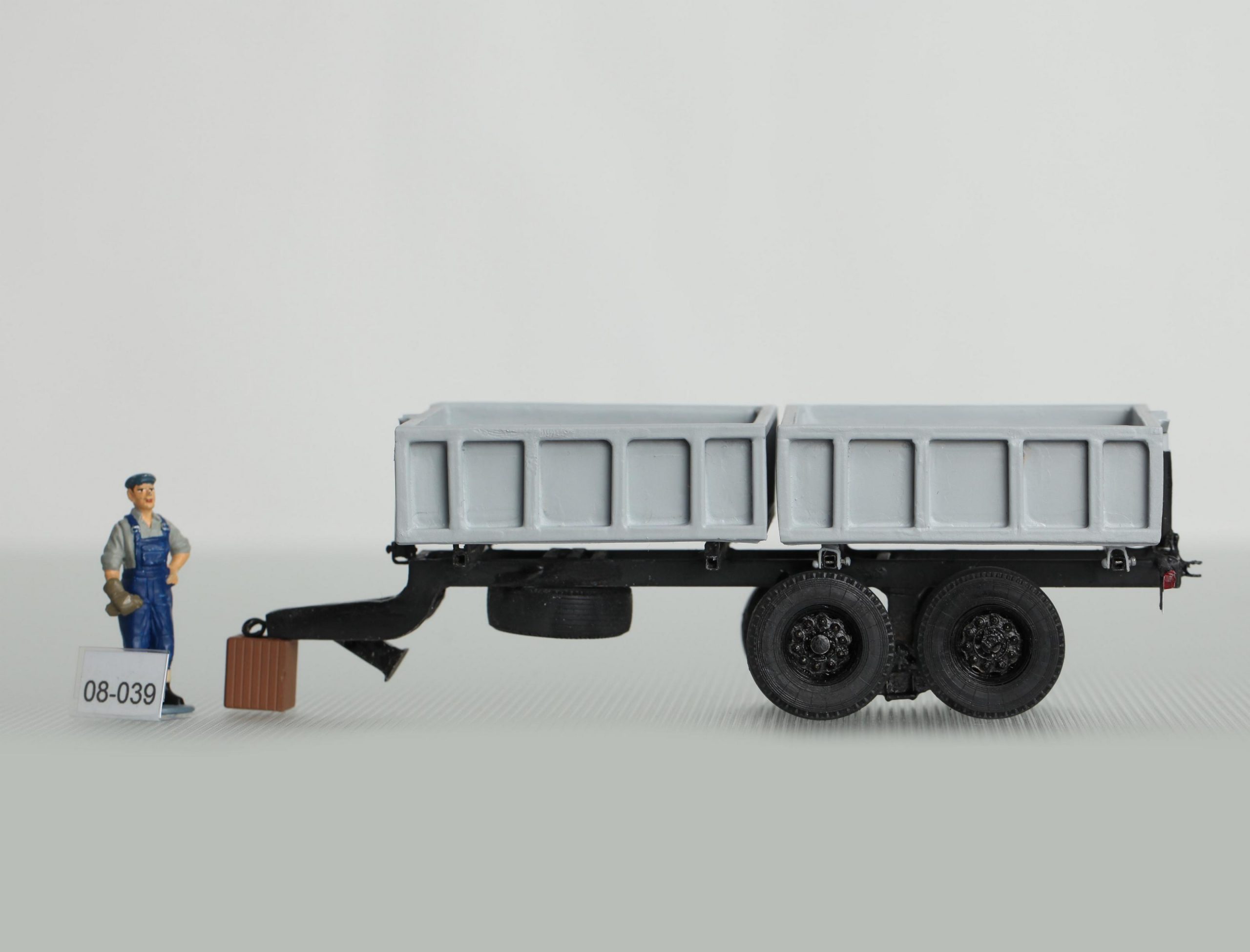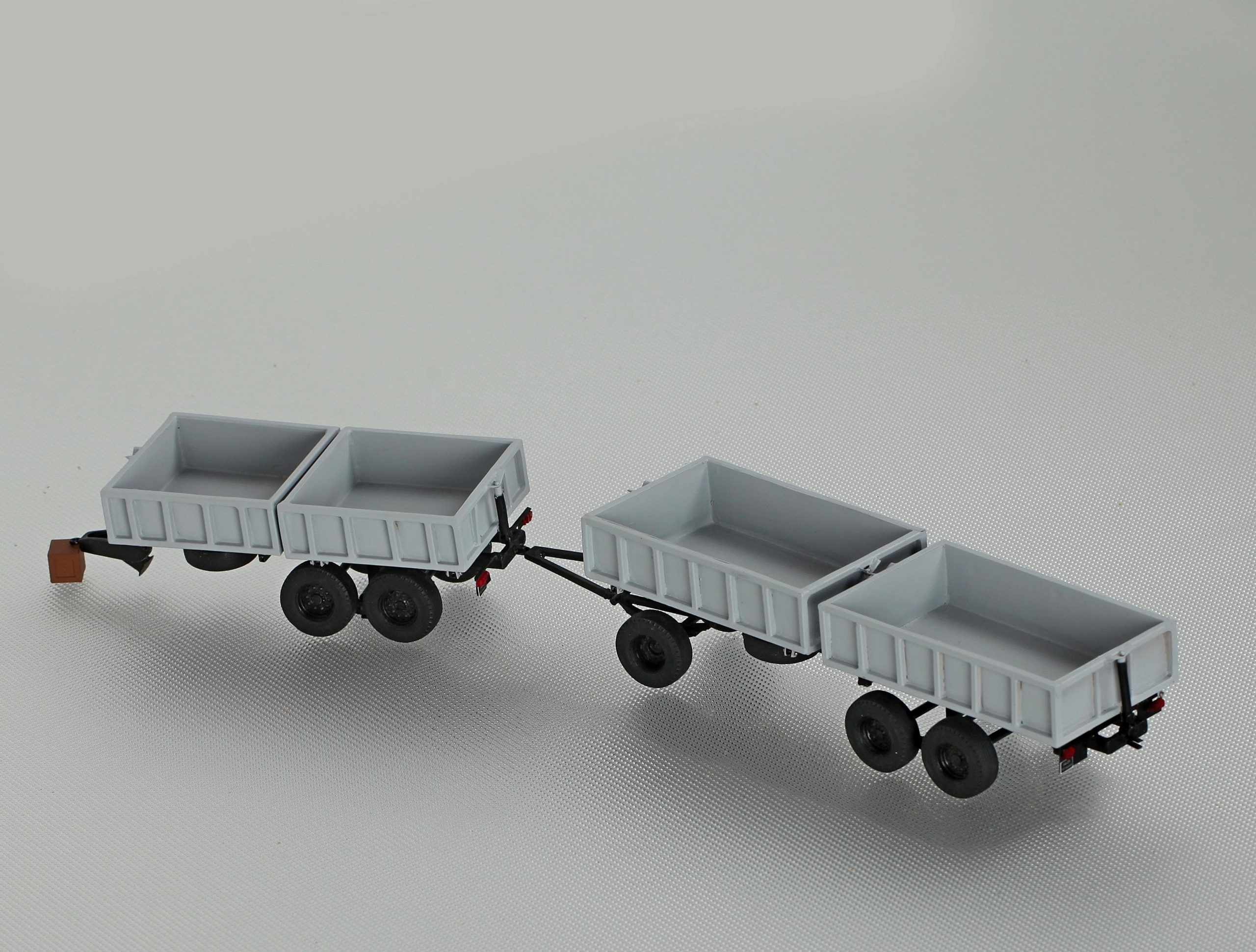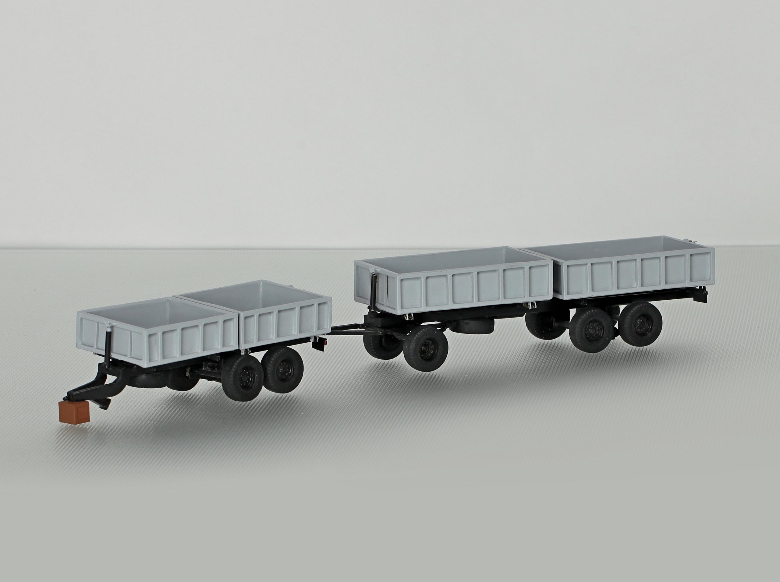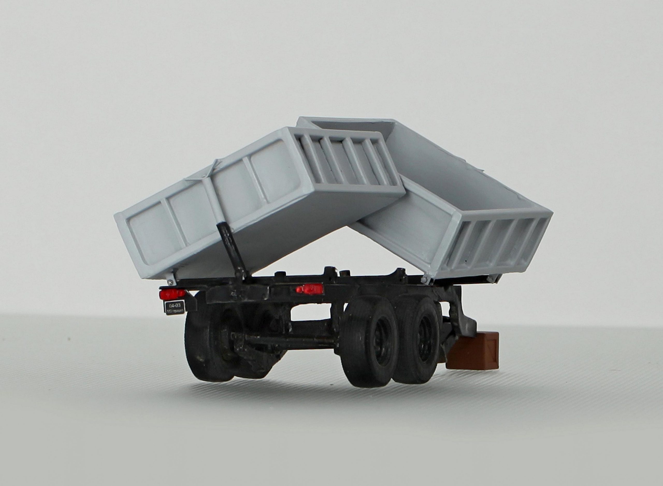Основные узлы: два металлических взаимозаменяемых самосвальных кузова, задний буксирный прибор, пневмо- и электровыводы для соединения с другим прицепом в составе поезда.