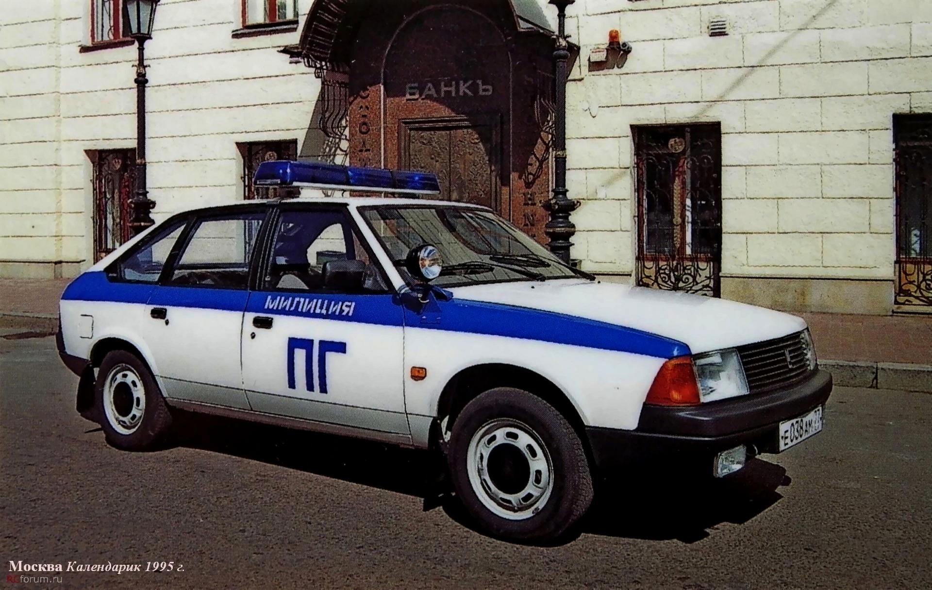 Москвич-21418 «Патруль» 4х2 5-дверный переднеприводный автомобиль со специальным оборудованием для патрульно-постовой службы ГУВД г. Москвы, экипаж 2-3 человека, мест: 5, полный вес до 1.465 тонн, максимальная скорость 150 км/час.