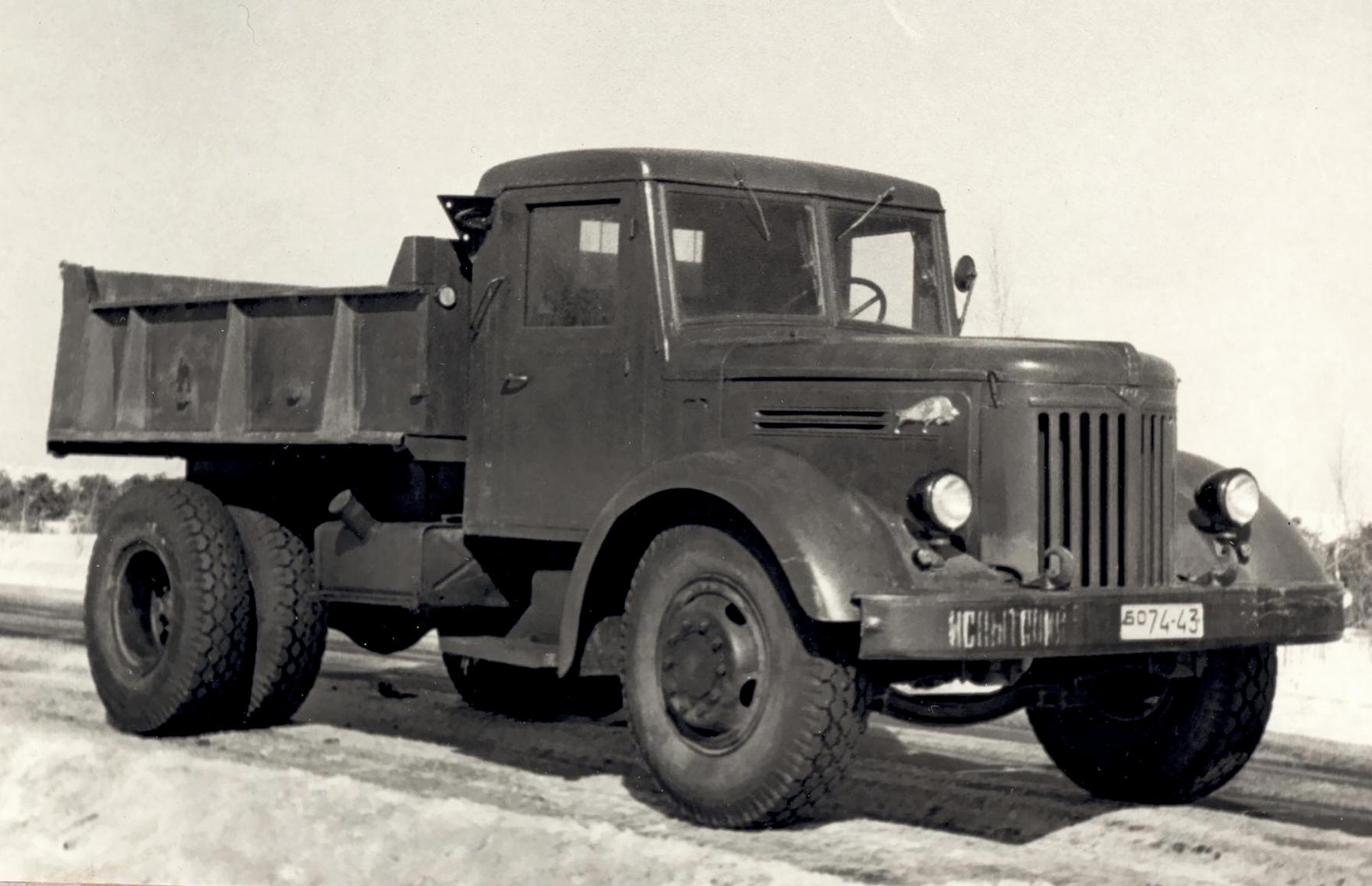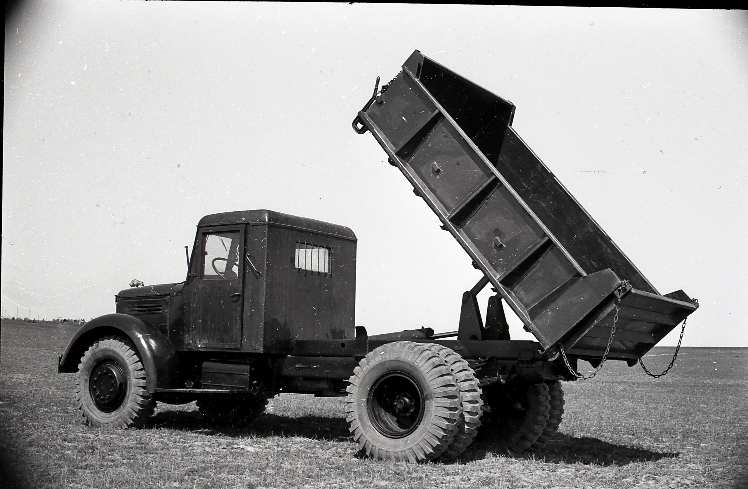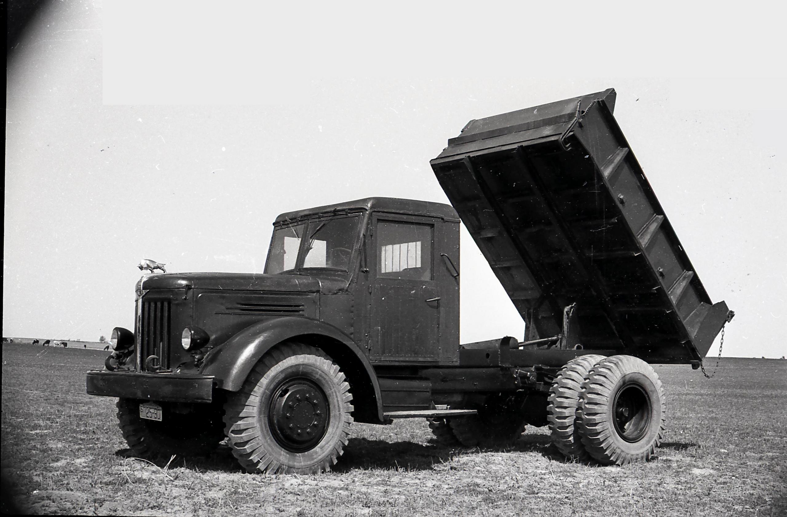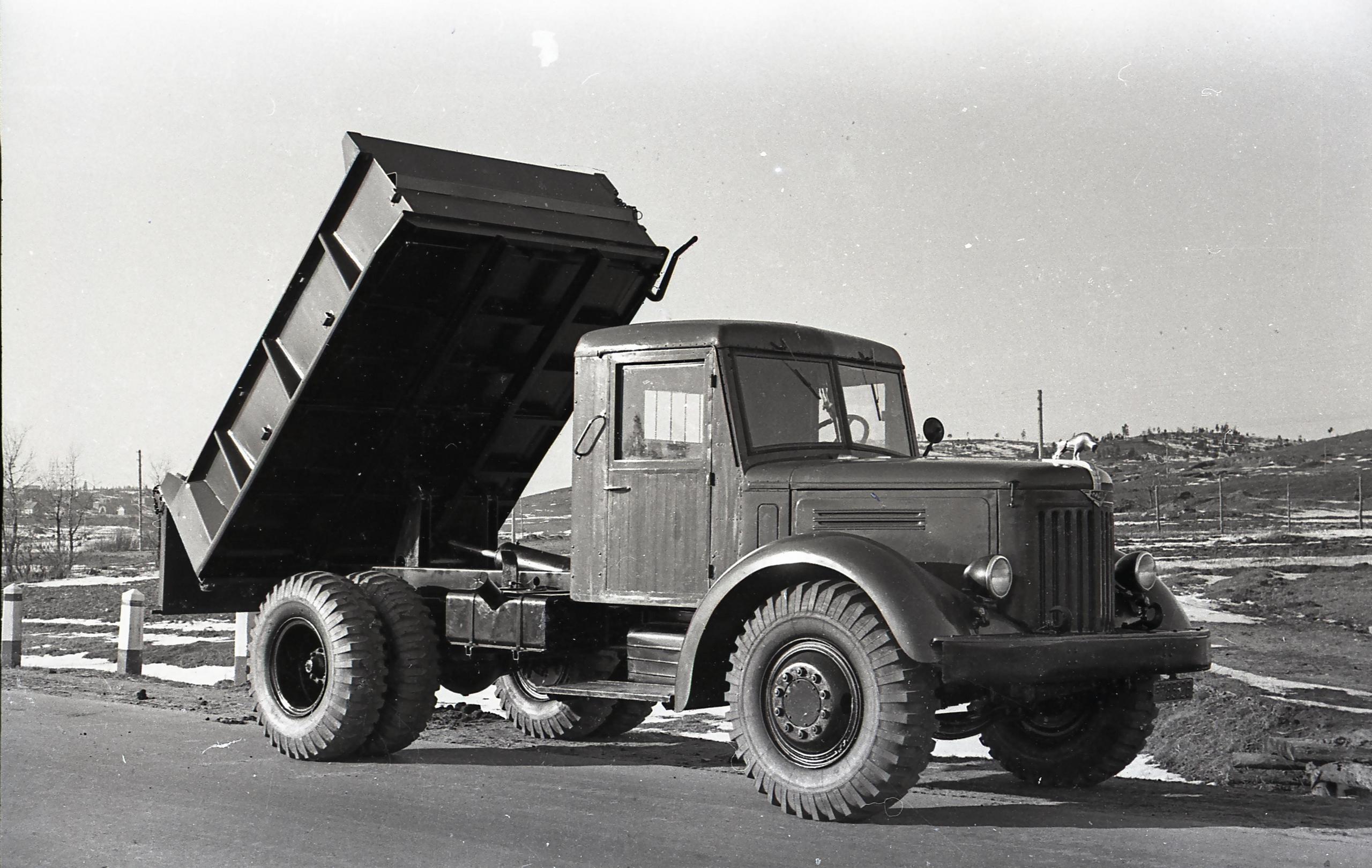 Опытный растворовоз на шасси МАЗ-205 с погрузочно-разгрузочным гидроподъемником