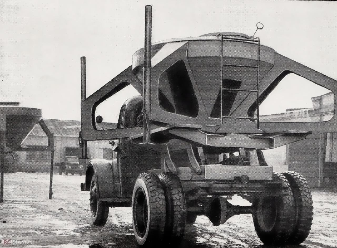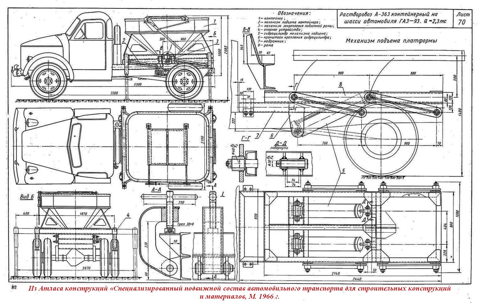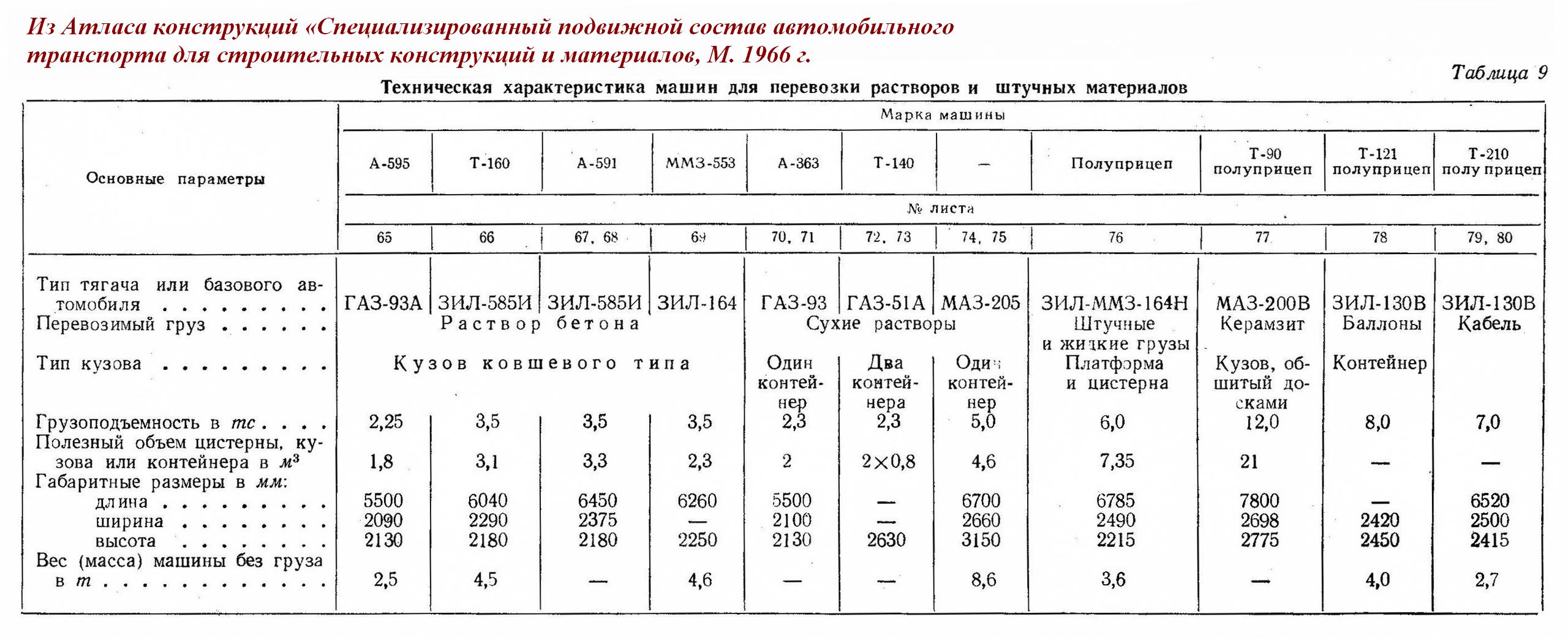 Из Атласа конструкций «Специализированный подвижной состав автомобильного транспорта для строительных конструкций и материалов, М. 1966 г.
