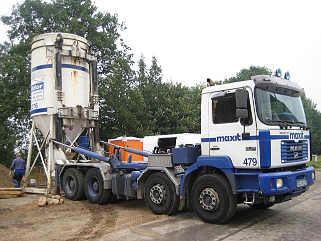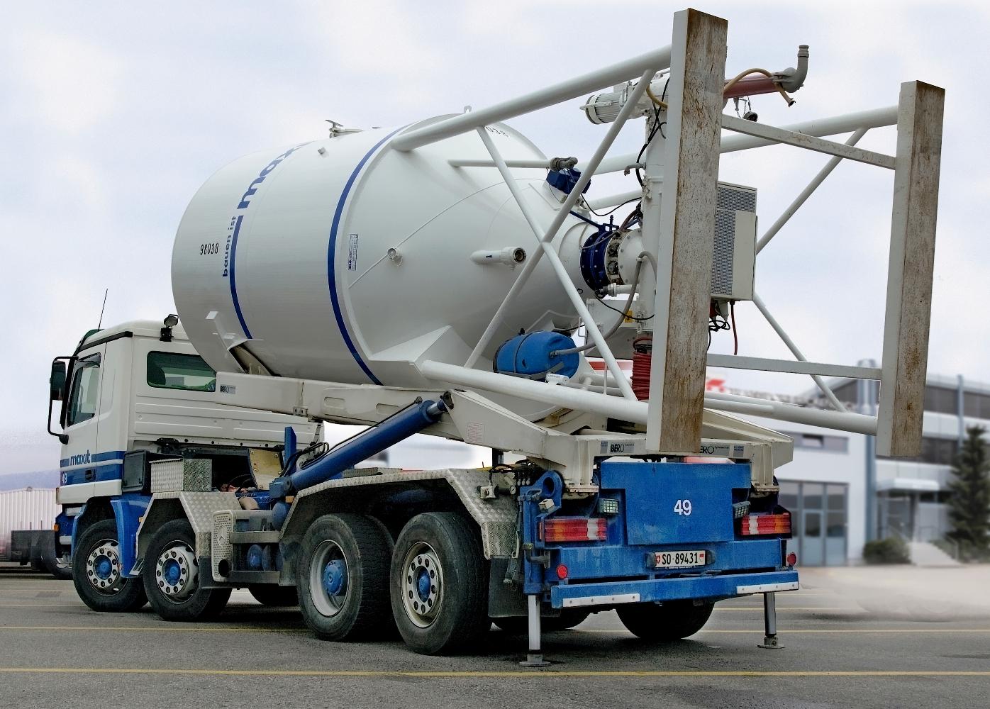 Такая перевозка растворов и сыпучих материалов снижает время простоев автомобиля под разгрузкой, не требует специальных грузоподъемных средств и дополнительных емкостей на строительных площадках, обеспечивает сохранность материалов при перевозке, хранении и вывозе независимо от климатических условий и температуры. При этом повышается производительность автомобиля.