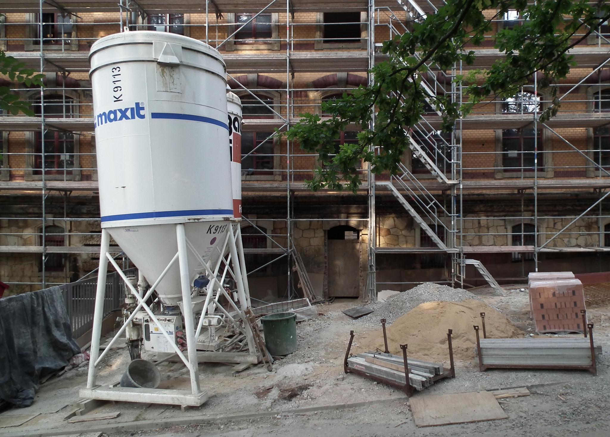 Для транспортировки и хранения растворов и сыпучих материалов Главленинградстроем разработаны конструкции инвентарных емкостей. Объем этих емкостей: для перевозки растворов 1 м3, грузоподъемность 1,8 т, собственный вес 1 т, длина и ширина по 2,7 м, высота 2,53 м. Для перевозки и хранения сыпучих материалов соответственно: 1,5 м3, 2 т, 0,7 т, 2,7 м и 2,58 м.