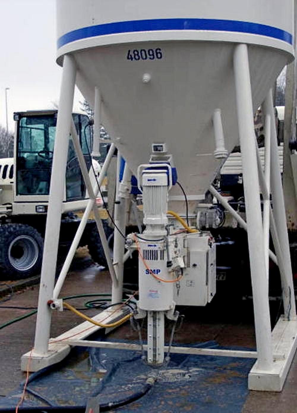 Контейнер представляет собой сварной бункер с герметической крышкой верхнего загрузочного люка; замок крышки выполнен в виде накидной скобы. Выгрузка раствора производится через нижний раздаточный люк с шиберным затвором, приводимым в действие винтом с рукояткой.