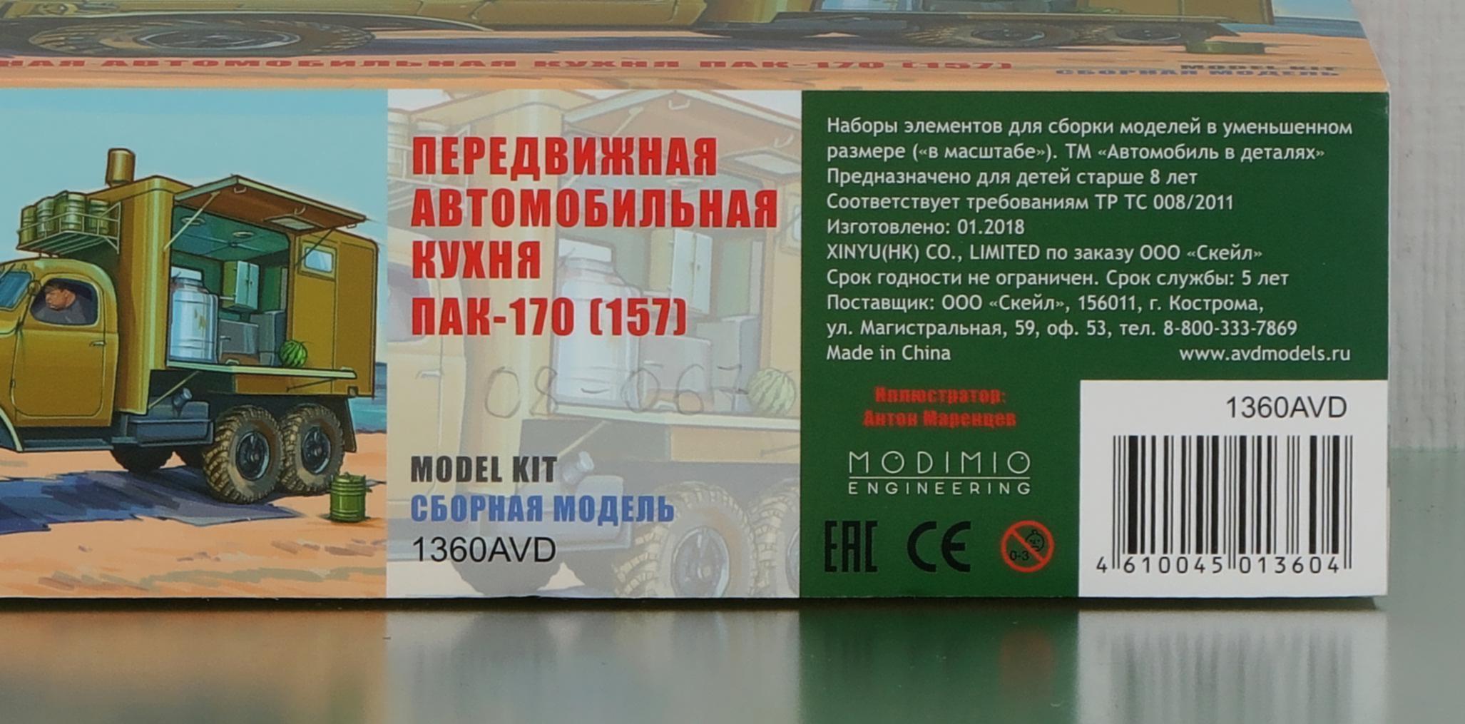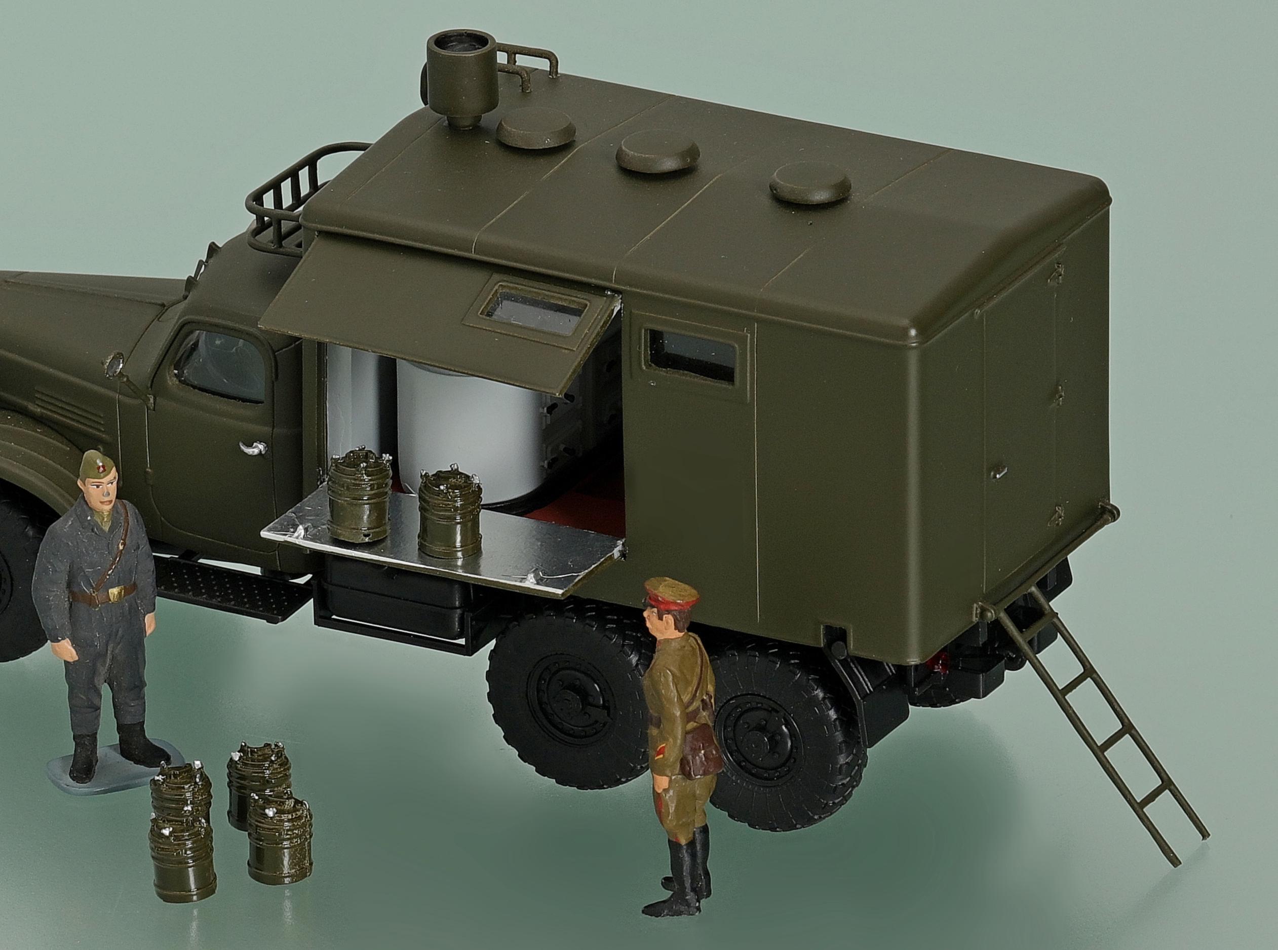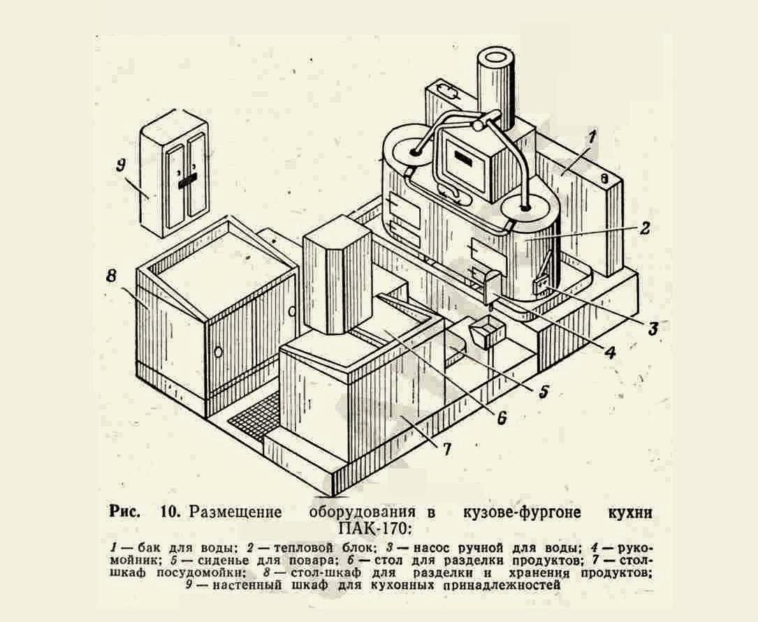 ПАК-170 войсковая передвижная автомобильная кухня для приготовления, транспортирования и выдачи горячей пищи для обслуживая до 170 чел. в день в полевых условиях, экипаж 3, шасси - ЗиЛ-157К 6х6, кузов - дерево-металлический, котлов 3, жарочный шкаф 1, бак для: воды 200 л, топлива 48 л, полный вес, 7.95 тонн, военный завод №111, г. Брянск, с 1969 года.