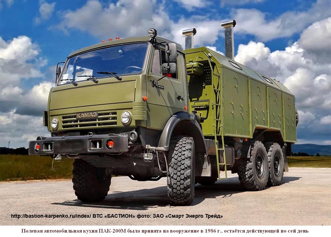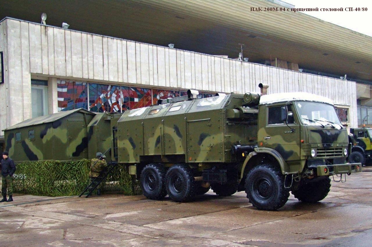 Ныне на вооружении Российской армии состоят мощные, мобильные и автономные технические средства приготовления и транспортирования пищи. Среди них кухни автомобильные КА-250, КА-220, КА-125, ПАК-200М, КВК-130.