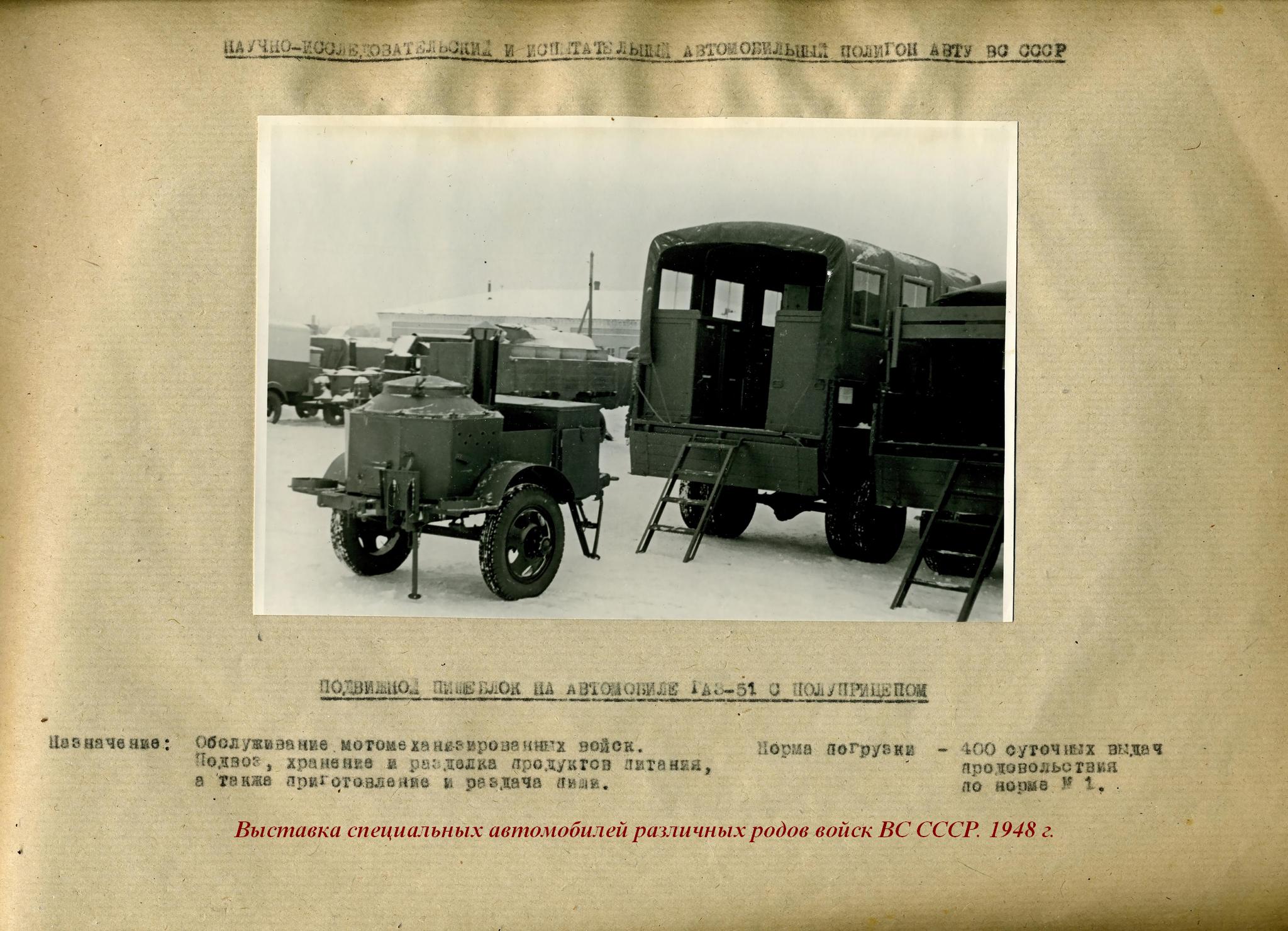 В 1946-55 г. были разработаны и приняты на вооружение прицепные кухни КП-2-48, КП-2-49, кухня малолитражная вьючная МВК-50.
