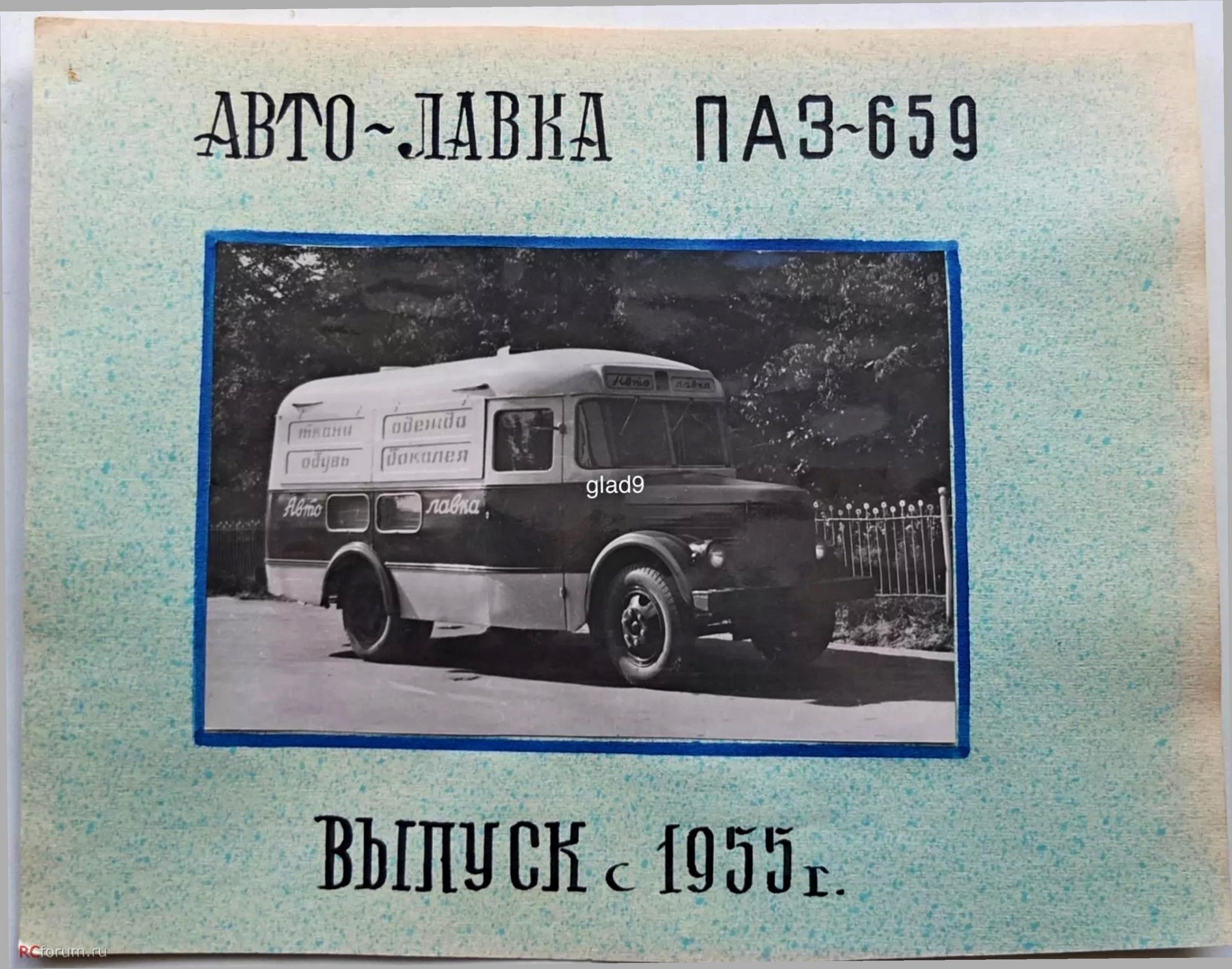 Н.С. Марков на dzen.ru 19 сентября 1957 года Совмином РСФСР было принято постановление об организации нового автобусного производства в Кургане, где уже с 1958-го начали строить "коробочки" модели ПАЗ-651А. Причем наряду с чисто пассажирскими машинами в Кургане начали делать и специализированные на их базе: например, автолавку ПАЗ-659 (4х2 и 4х4) для выездной торговли в сельской местности и на отгонных пастбищах. Вместо пассажирского салона ее кузов имел торговое помещение с остекленной витриной и прилавком, а также шкафы для хранения и перевозки товаров.
