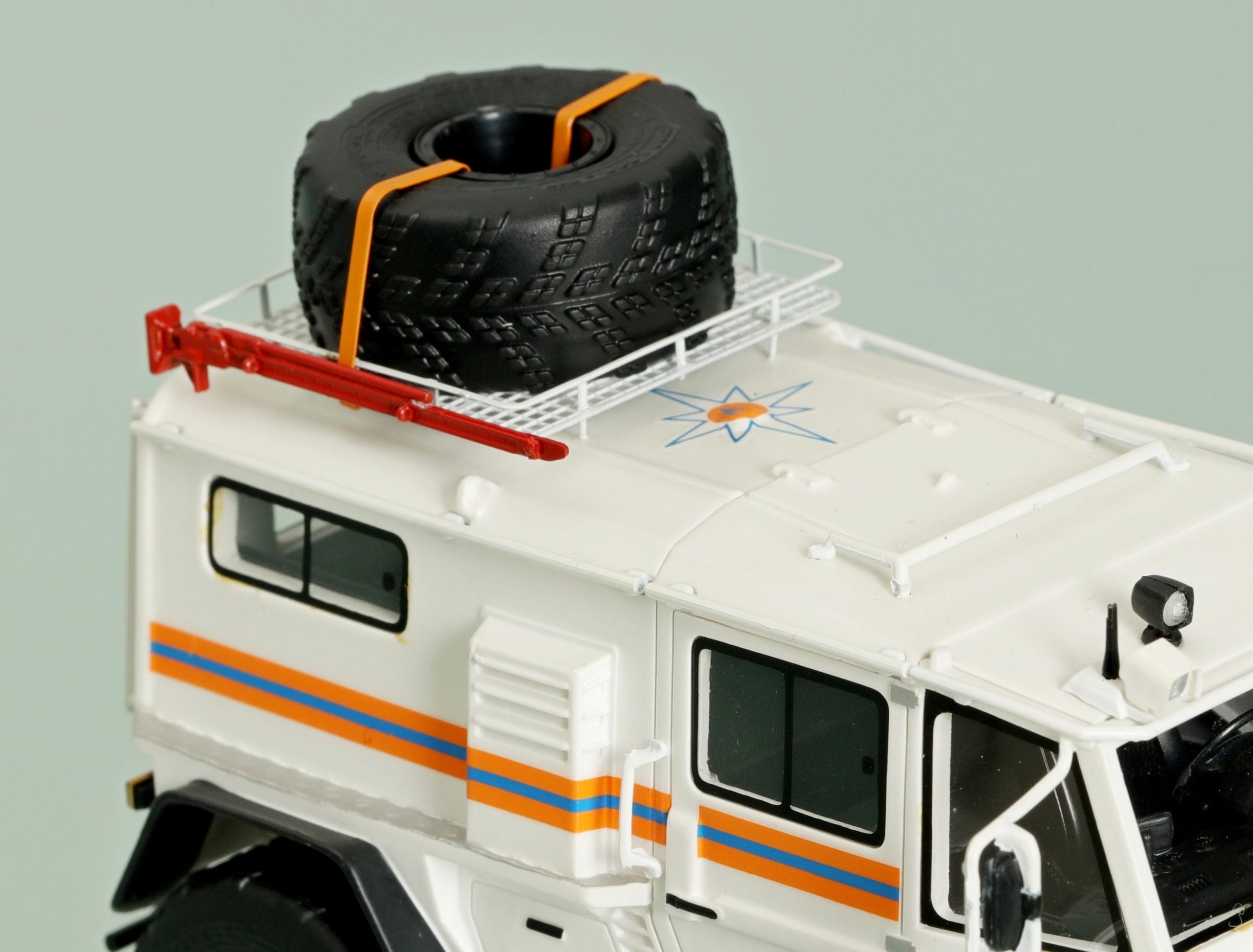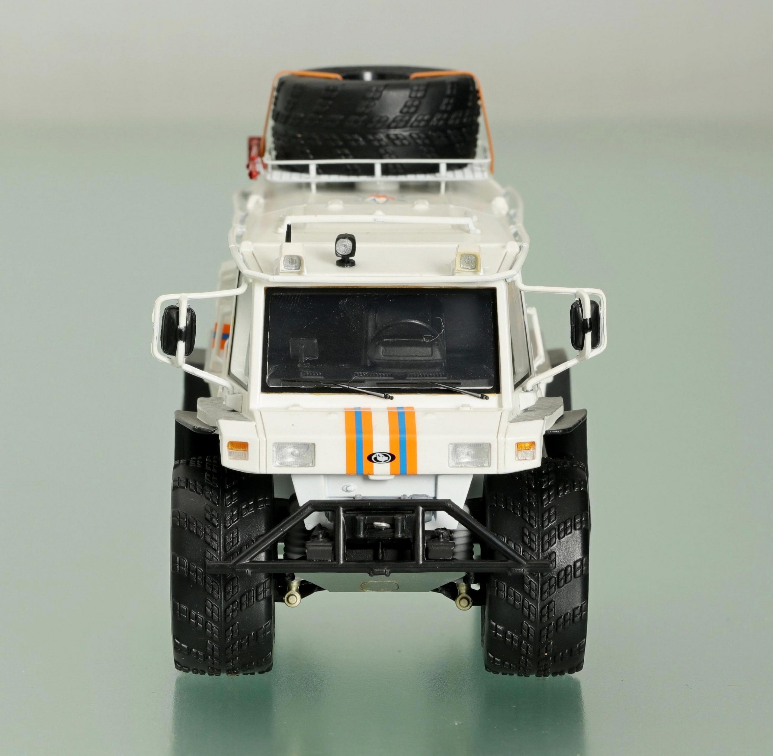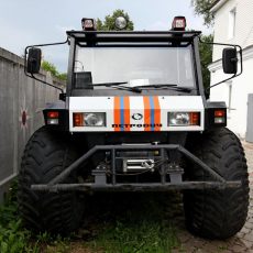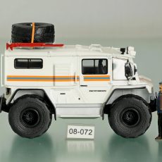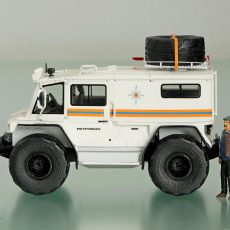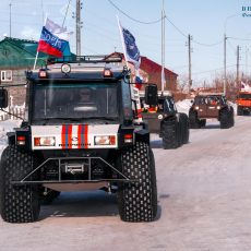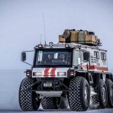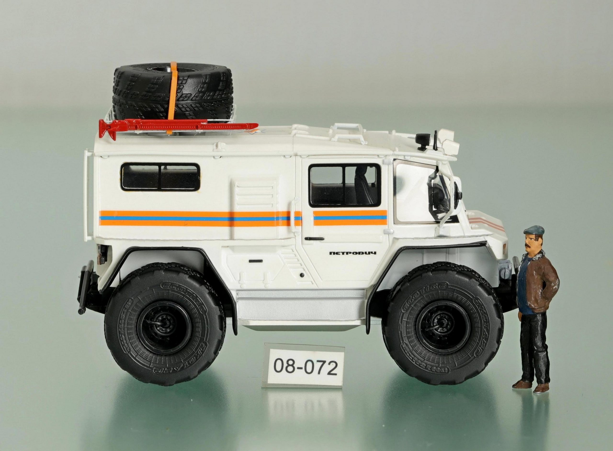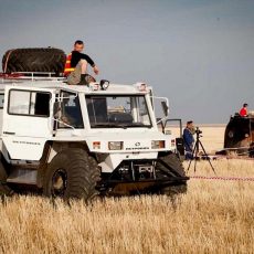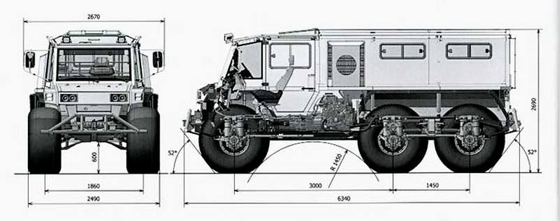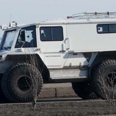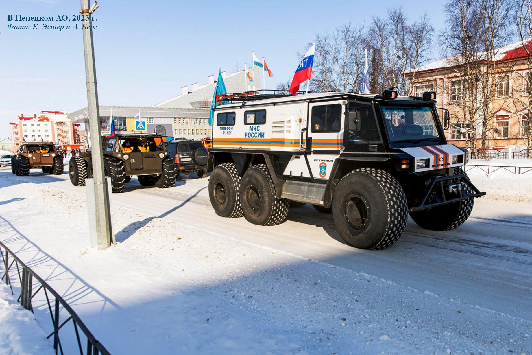 В 2011-м на смену «Гриве», на которой, очевидно, прорабатывалась концепция будущей серийной машины, пришел «Петрович». О нем уже можно говорить как о состоявшемся и массовом (конечно, в рамках вездеходостроения) продукте, имеющем модельный ряд и по-прежнему дизайнерски изящном. Схема трансмиссии у них принципиально не изменилась, разве что центральный дифференциал стал принудительно блокироваться. И в трехосном варианте появилась дополнительная «раздатка» для привода заднего моста, который включается электромуфтой после блокировки дифференциала в первой РК. Остались на месте и колесные редукторы, и пружинная «двухрычажка». На «Петровиче» 4х4 используется 1,7-литровый нивовский агрегат. Для модификации 6х6 на выбор предлагаются турбодизели Hyundai, итальянский CMD или Iveco. Весят машины 2 и 2,5 т соответственно, грузоподъемность чуть больше 700 и 1300 кг. Мы не зря даем целую серию фото «Петровичей» — красивый аппарат! Судя по всему, еще и неплохо передвигающийся и надежный. На его счету испытания на Ямале, в пустынях ОАЭ, несколько встреч приземлившихся космонавтов, не говоря уже о «простом» русском бездорожье.