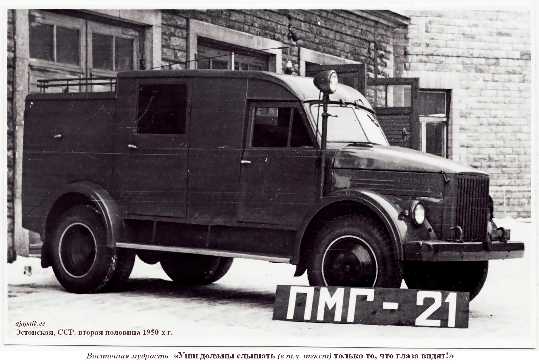 В 1955 году грузовой автомобиль ГАЗ-51 проходит модернизацию и получает индекс ГАЗ-51А. На машины стали устанавливать стояночный тормоз барабанного типа. Кабину оснастили отопителем и обдувом ветрового стекла. Все последующие пожарные автомобили будут выпускаться на этом шасси. На базе ГАЗ-51А ОКБ-8 разрабатывает рабочие чертежи нового автонасоса ПМГ-21. Опытный образец проходит испытания, и после небольших изменений, внесенных по требованию заказчика в конструкцию рукавной катушки и в узел крепления трехколенной лестницы, принимается к производству. Установочная партия новых автомобилей в количестве 20 штук была изготовлена в 1955 году. Конструкторы и технологи Московского завода работают над модернизацией производства под модель 21, поэтому с запуском новой марки в серию проблем не возникает. По мнению официальных историков Московского завода, автонасос ПМГ-21 был признан лучшим из выпускавшихся в то время советских пожарных автомобилей.