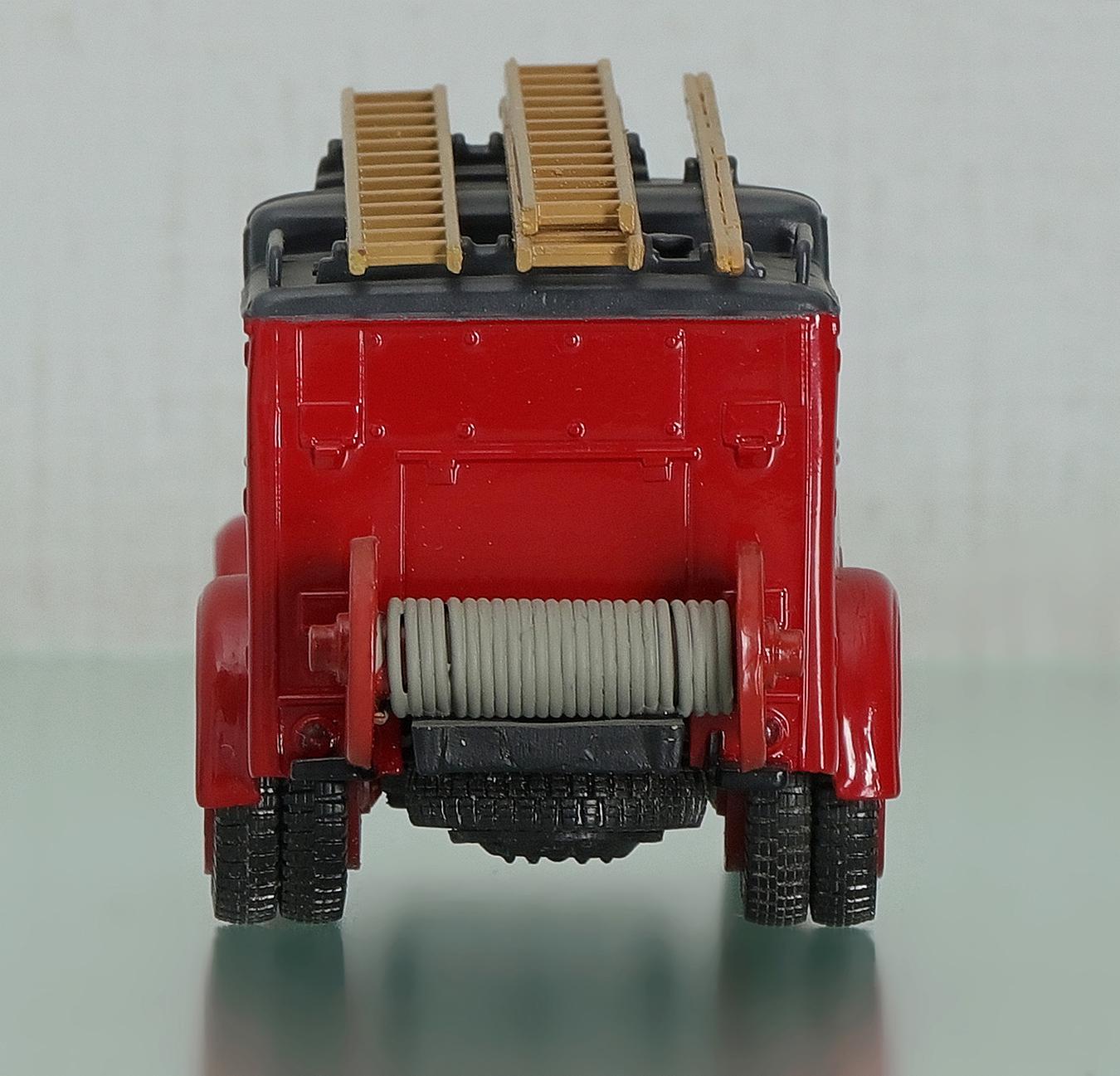 Итак, ПМГ-5. Закрытый кузов автонасоса вмещал 6 человек, двое из которых находились в кабине водителя и четверо, на двух сидениях лицом друг к другу, в кабине боевого расчета. Внешний облик автомобиля выглядел немного несуразно за счет «горба» над кабинами и высоко расположенного окна кабины боевого расчета. Отличительной особенностью автонасоса было нижнее, на подножке, размещение всасывающих рукавов. На крыше кузова размещались только лестницы. Подобное размещение в условиях плохой погоды, бездорожья и летящей из-под колес грязи не способствовало сохранности рукавов.