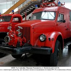 Итак, ПМГ-5. Закрытый кузов автонасоса вмещал 6 человек, двое из которых находились в кабине водителя и четверо, на двух сидениях лицом друг к другу, в кабине боевого расчета. Внешний облик автомобиля выглядел немного несуразно за счет «горба» над кабинами и высоко расположенного окна кабины боевого расчета. Отличительной особенностью автонасоса было нижнее, на подножке, размещение всасывающих рукавов. На крыше кузова размещались только лестницы. Подобное размещение в условиях плохой погоды, бездорожья и летящей из-под колес грязи не способствовало сохранности рукавов.