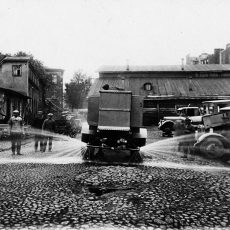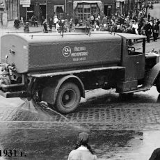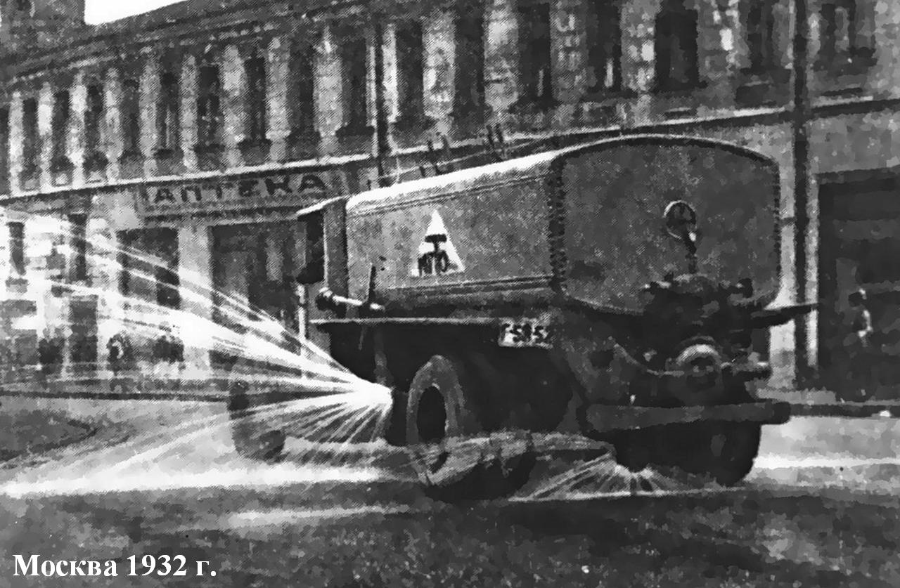 Возможно, он орудовал каким-то инструментом или прицепным приспособлением, чтобы улучшить качество очистки проезжей части. Ведь мы помним, что основным пассажирским и грузовым транспортным средством в нашей стране вплоть до конца 1930-х годов были, запряженные лошадьми, различного назначения телеги и повозки и уборка конского навоза представляла собой не маленькую проблему. И никакие мешки, подвязываемые под хвост лошади, не спасали. Это в более поздние времена основной задачей поливомоечных машин стало удаление с улиц пыли и мелкого мусора.