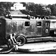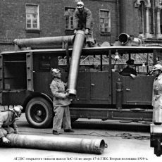 В середине 30-х годов в больших гарнизонах появляются первые автомобили газодымозащитной службы - сначала они назывались "автомобили ГДС". Шасси ЗиС-5, открытая кабина, но уже закрытая крышей - таков внешний вид первых таких автомобилей. На пожар вывозятся не только изолирующие противогазы КИП-3, и снаряжение для них, фонари, шанцевый инструмент, но и так называемые дыморефулеры с рукавами - по нашему - дымососы. И интереснейшая штука того времени - аппараты искусственного дыхания типа "Инхабад". На автомобиле выезжало 10 человек, включая командира и водителя, что составляло 2 так называемых "звена".