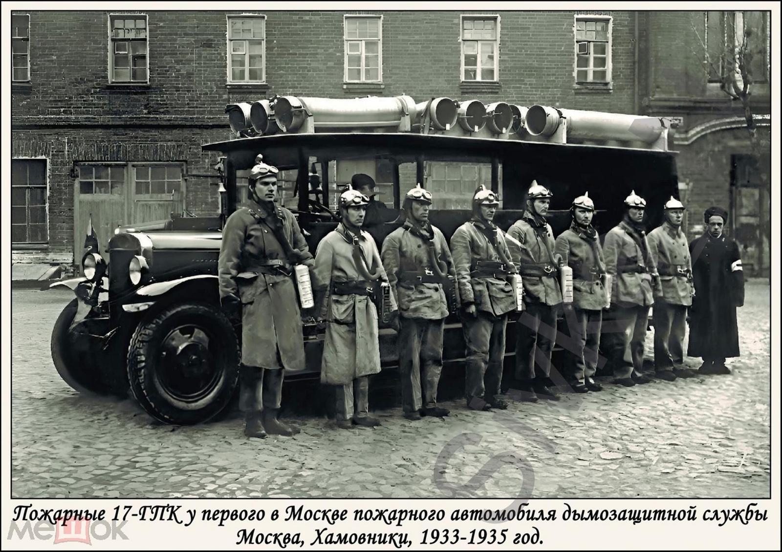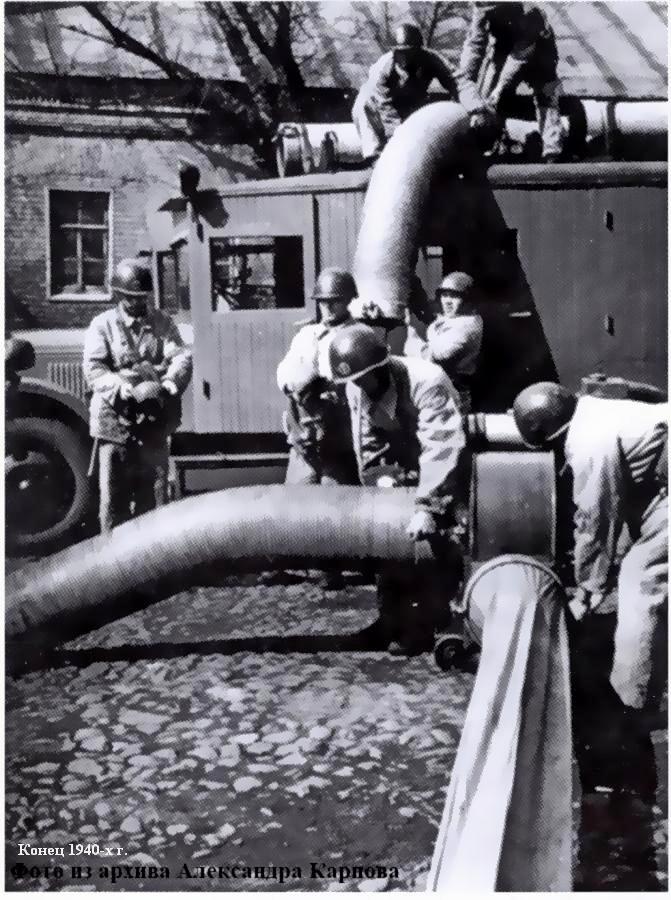 В середине 30-х годов в больших гарнизонах появляются первые автомобили газодымозащитной службы - сначала они назывались "автомобили ГДС". Шасси ЗиС-5, открытая кабина, но уже закрытая крышей - таков внешний вид первых таких автомобилей. На пожар вывозятся не только изолирующие противогазы КИП-3, и снаряжение для них, фонари, шанцевый инструмент, но и так называемые дыморефулеры с рукавами - по нашему - дымососы. И интереснейшая штука того времени - аппараты искусственного дыхания типа "Инхабад". На автомобиле выезжало 10 человек, включая командира и водителя, что составляло 2 так называемых "звена".