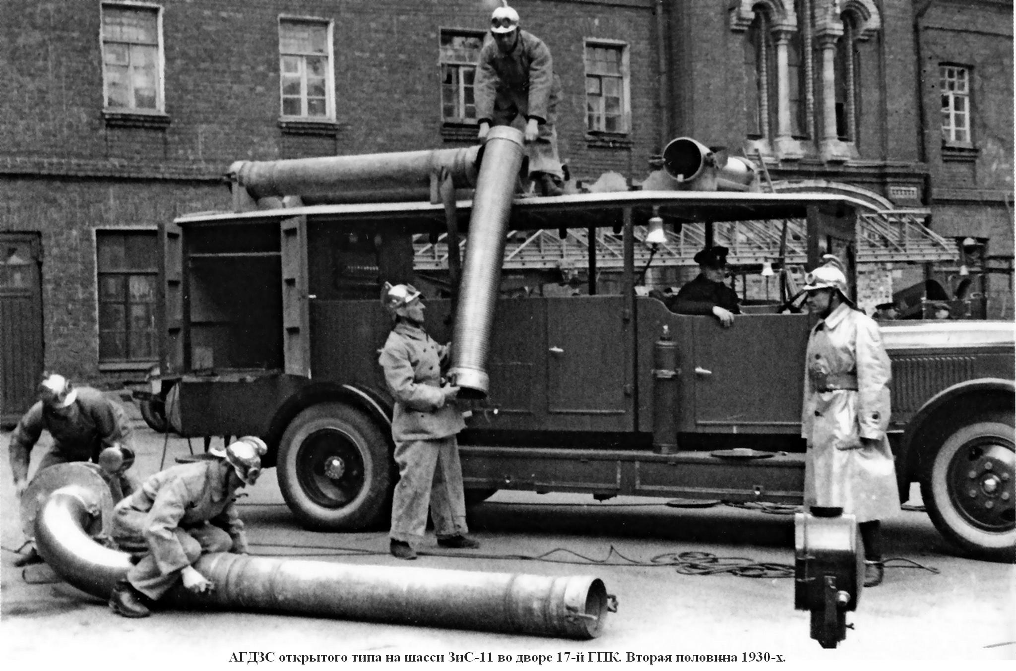 Во второй половине 1930-х годов АГДЗС были в трёх командах: 17-й, 1-й и 12-й. После закрытия в 1937 году 1-й ГПК в связи со сносом здания пожарного депо из-за строительства Большого Москворецкого моста, их АГДЗС передали в 17-ю пожарную команду. И по воспоминаниям ветеранов в то время в этой части в расчёте стояло сразу две "газовки". И на каждой из них выезжало по 12 человек.
