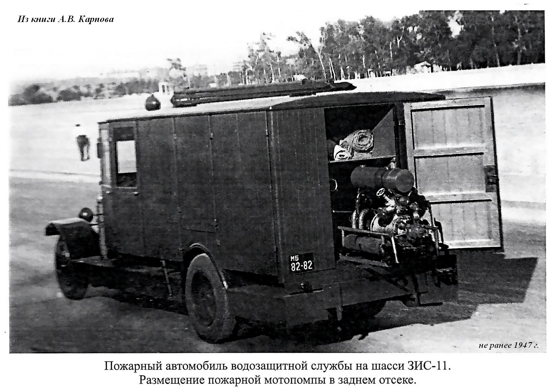 С 1934 года на заводе имени Сталина в Москве началось производство шасси ЗиС-11, предназначенных для монтажа пожарного оборудования. Это было первое шасси специально разработанное для пожарной техники. Шасси не разрабатывалось с нуля, за основу взяли шасси АМО-4. Колёсная база 4420 мм, грузоподъёмность 3,5 т. Большая их часть направлялась на Московский завод пожарных машин для изготовления пожарного автонасоса-линейки ПМЗ-1. Годовой выпуск ПМЗ-1 колебался в пределах 360-390 экземпляров