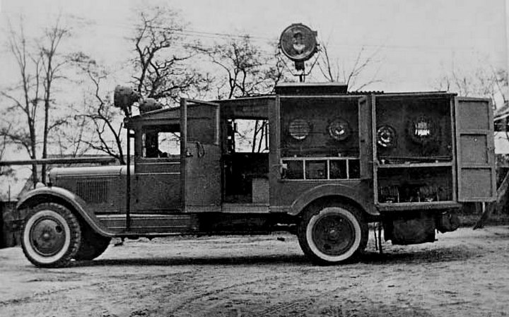Над дверцами задних ящиков на кронштейнах укреплены две катушки для 100-мм электрического кабеля. Между катушками укреплена деревянная лесенка для подъема на крышу автомашины. В задней части шасси установлена на двух поперечных и одном продольном подкосах динамомашина 220 V напряжения, мощностью 3,6 kW.