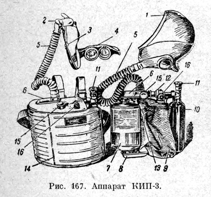Кислородных аппаратов типа КИП-3 9 шт. (из них два резервных)