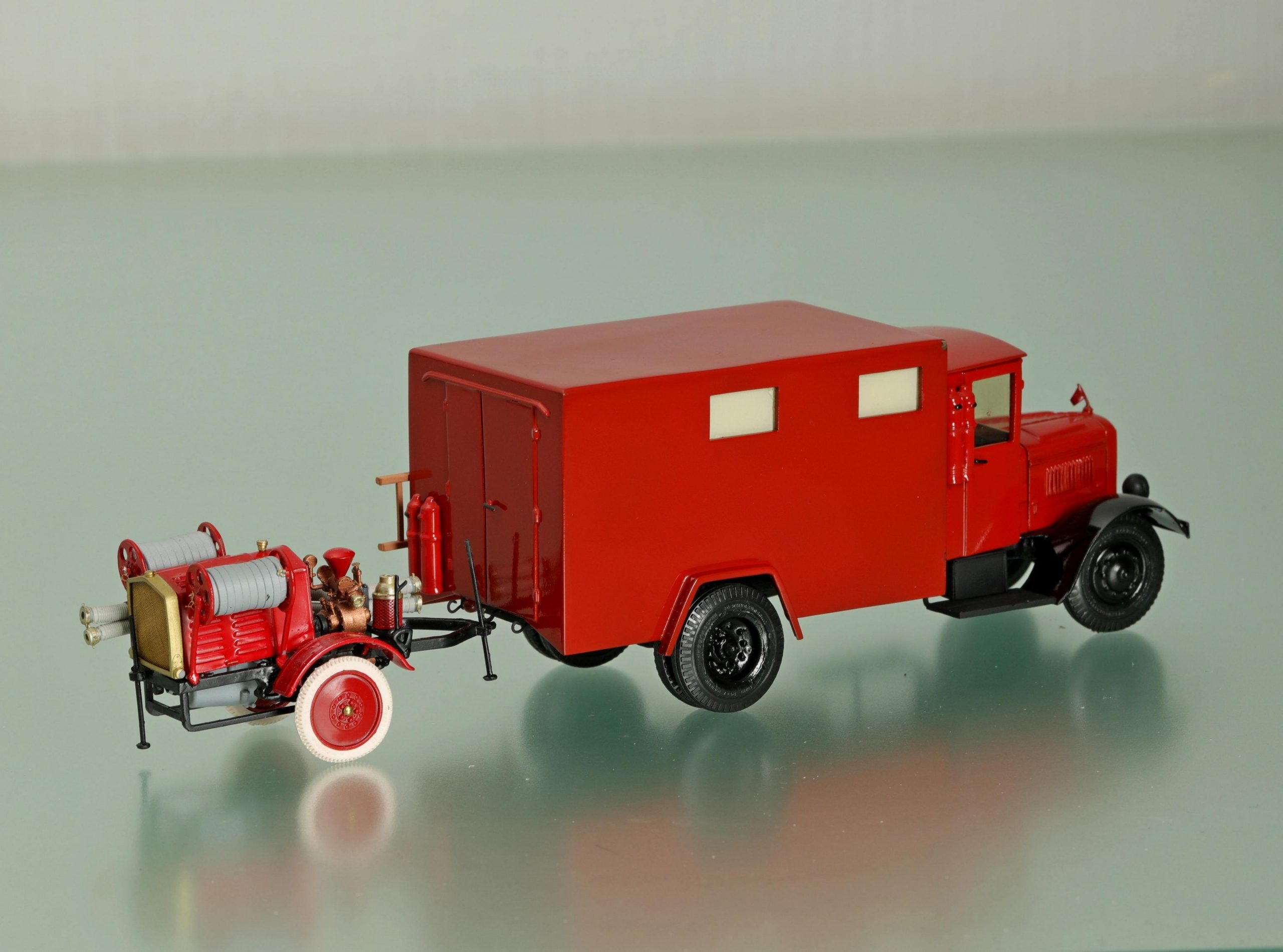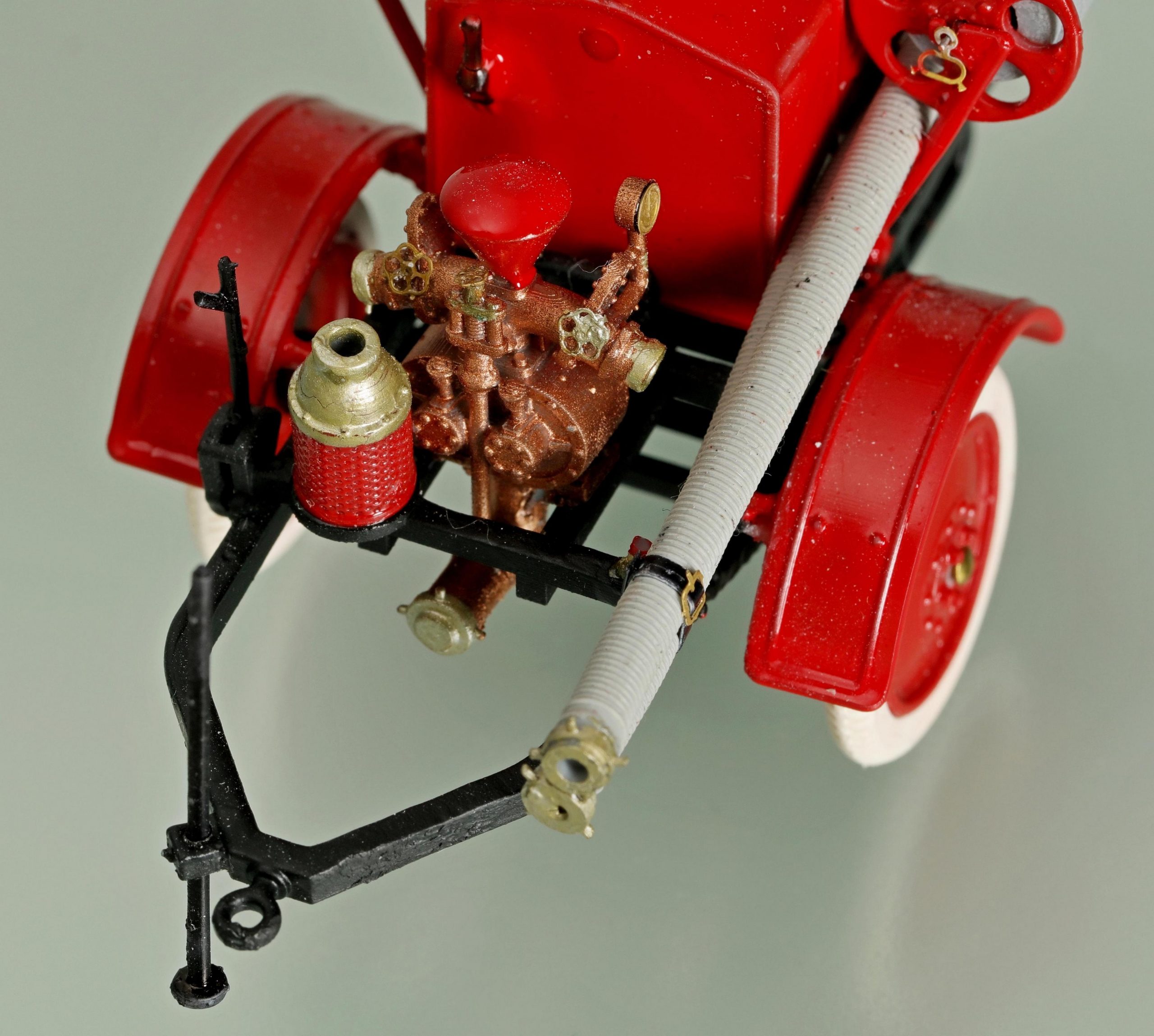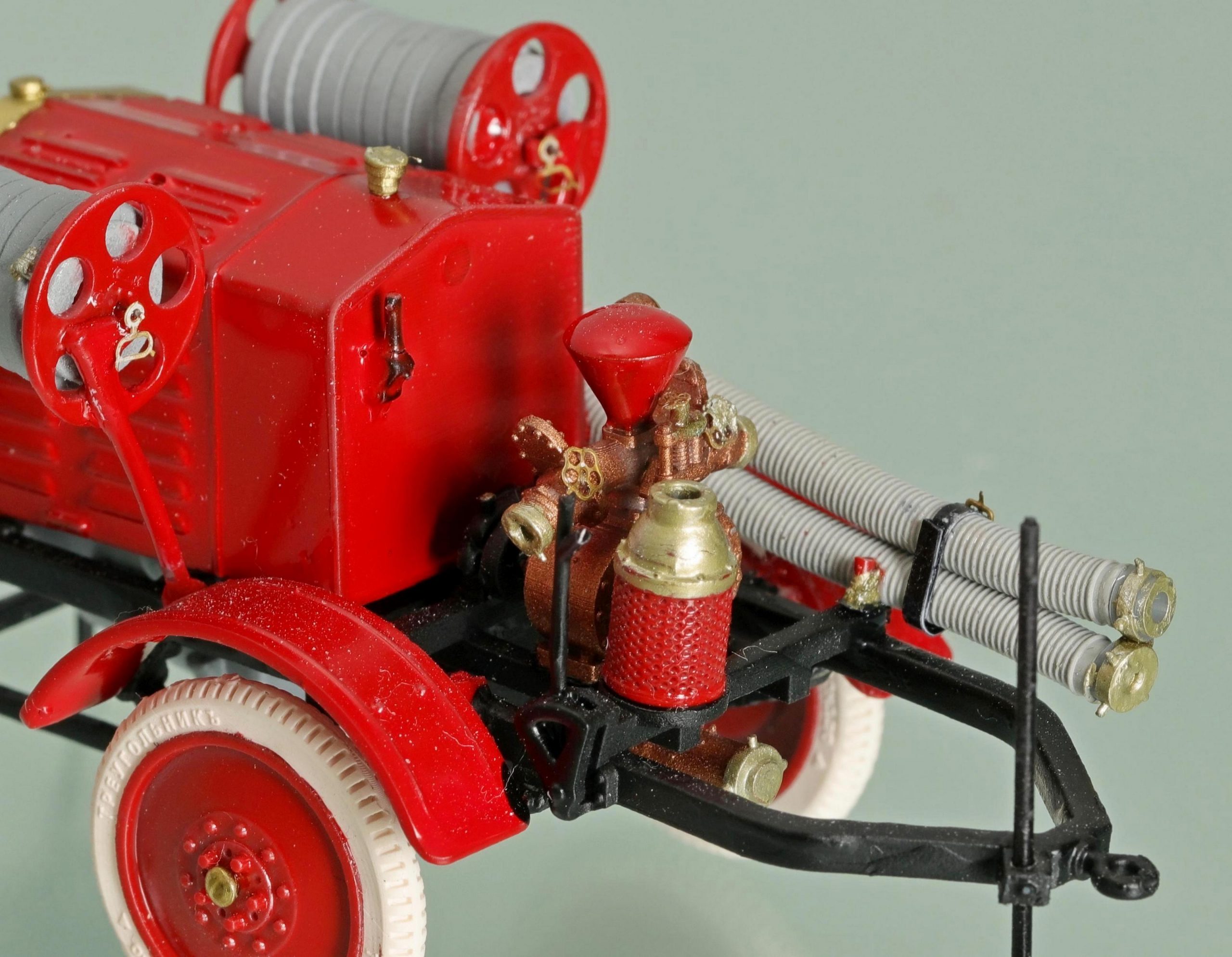 Приобретение этой модельки дало повод вспомнить о первом, относительно массовом, применении в пожарной охране двигателей внутреннего сгорания (ДВС), конкретно, в качестве силового агрегата пожарной помпы для привода насоса. За ним последовало главное событие в истории пожарного дела ХХ столетия - «появление детей бурно развивающегося технического прогресса - автомобилей».