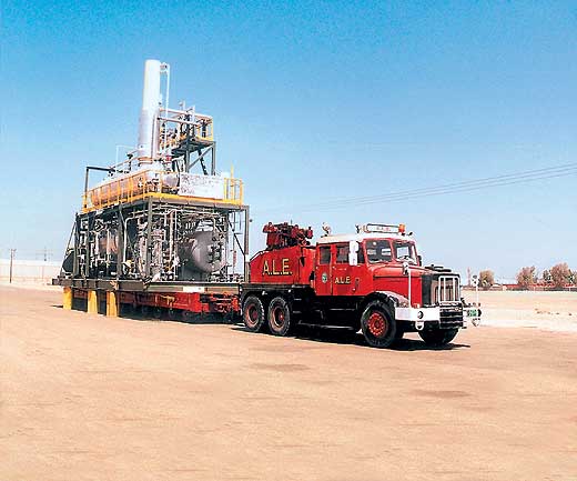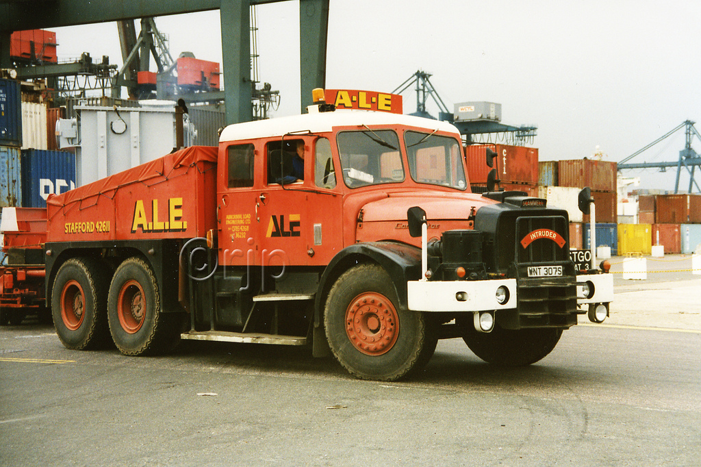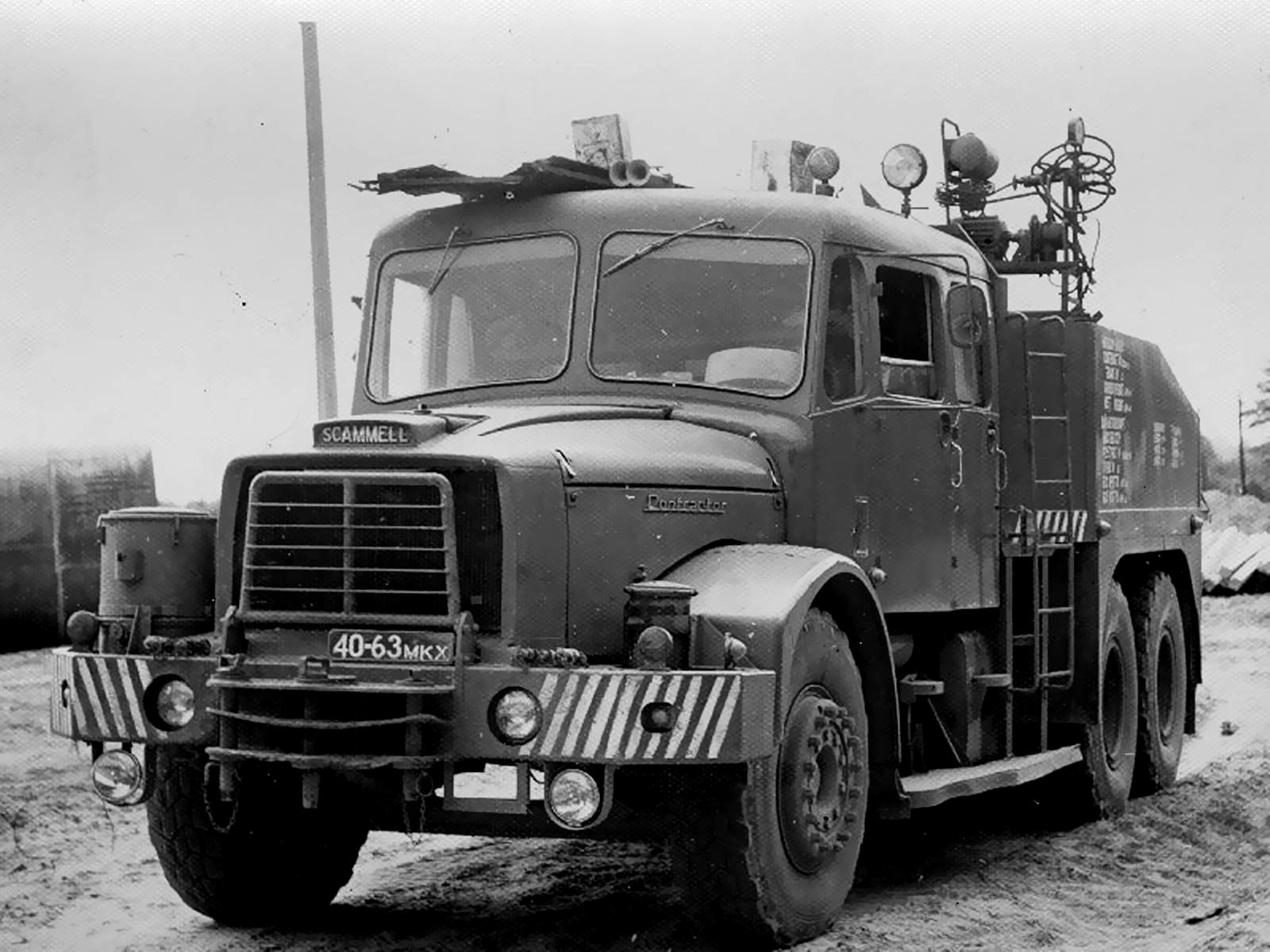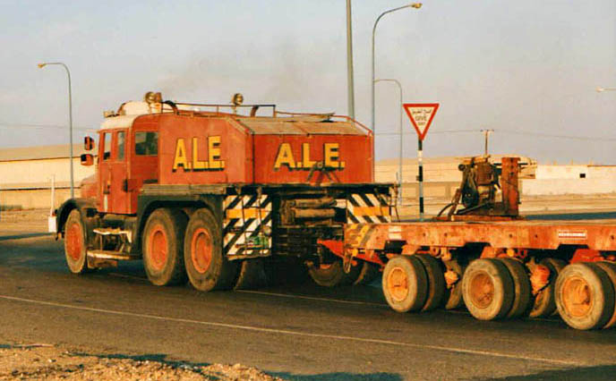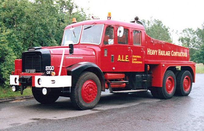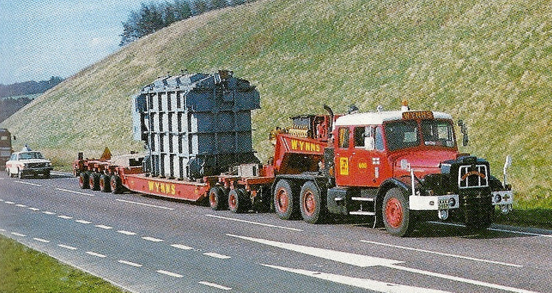 Road train "Abnormal Load Engineering, A.L.E." total weight 400 tons, 2 heavy haulage Scammell Contractor 6х6 maximum speed 62 km/h. Engine: 335-425 HP and 2 6-axle trailers Nicolas Manufactured in the England in 1964.