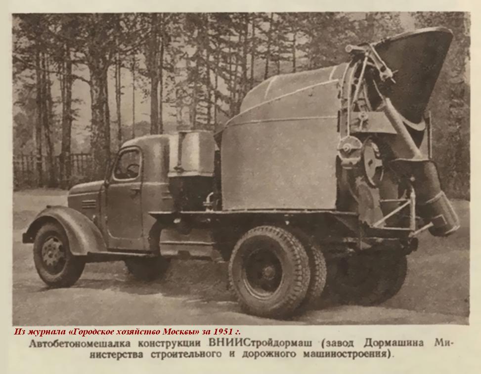 Из статьи В. Новоселова "Советский автобетоносмеситель с иностранным акцентом" в журнале "Строительная техника и технологии", № 2(36)2005.
