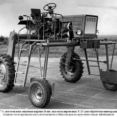 (lubovbezusl.ru) Массовое производство тракторов Т-25А (мод. А2 с тентом) начато в октябре 1973 г. Первый трактор Т-25А, оснащенный кабиной, собран специалистами экспериментального цеха к 1 мая 1974 г., в 1976 г. началось освоение производства трактора Т-25А с кабиной (базовая модель), а их массовый выпуск начался в 1977 г. В этом же году освоено производство трактора Т-25А3 со съемным каркасом безопасности для работы на пересеченной местности.