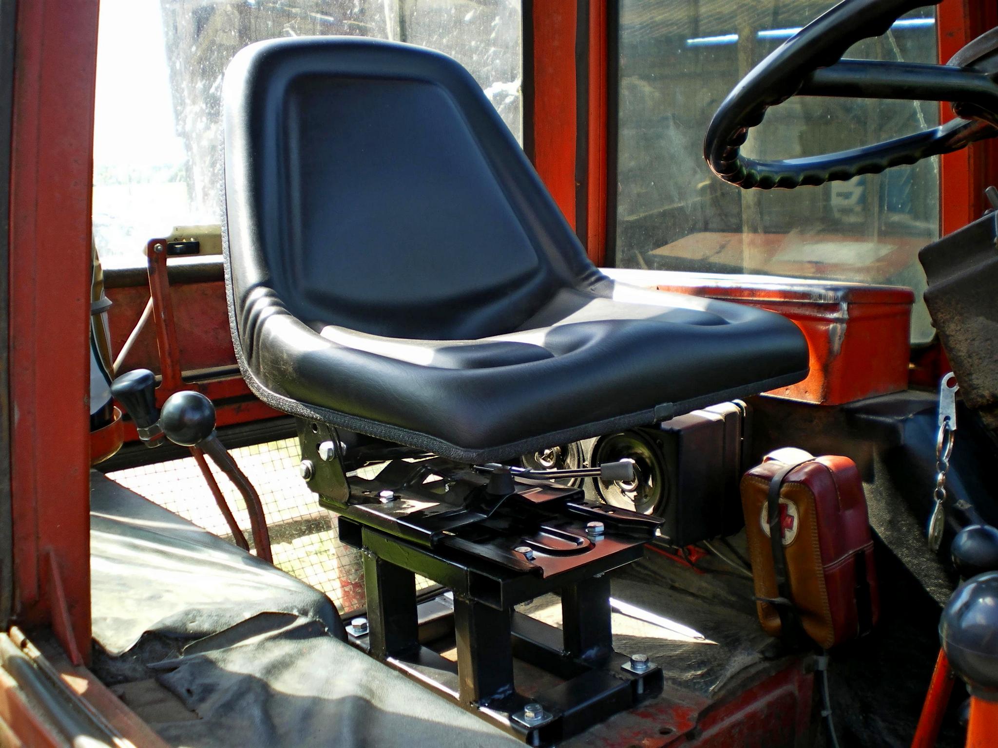 Сиденье мягкое, подрессоренное, с регулировкой по весу и росту водителя.