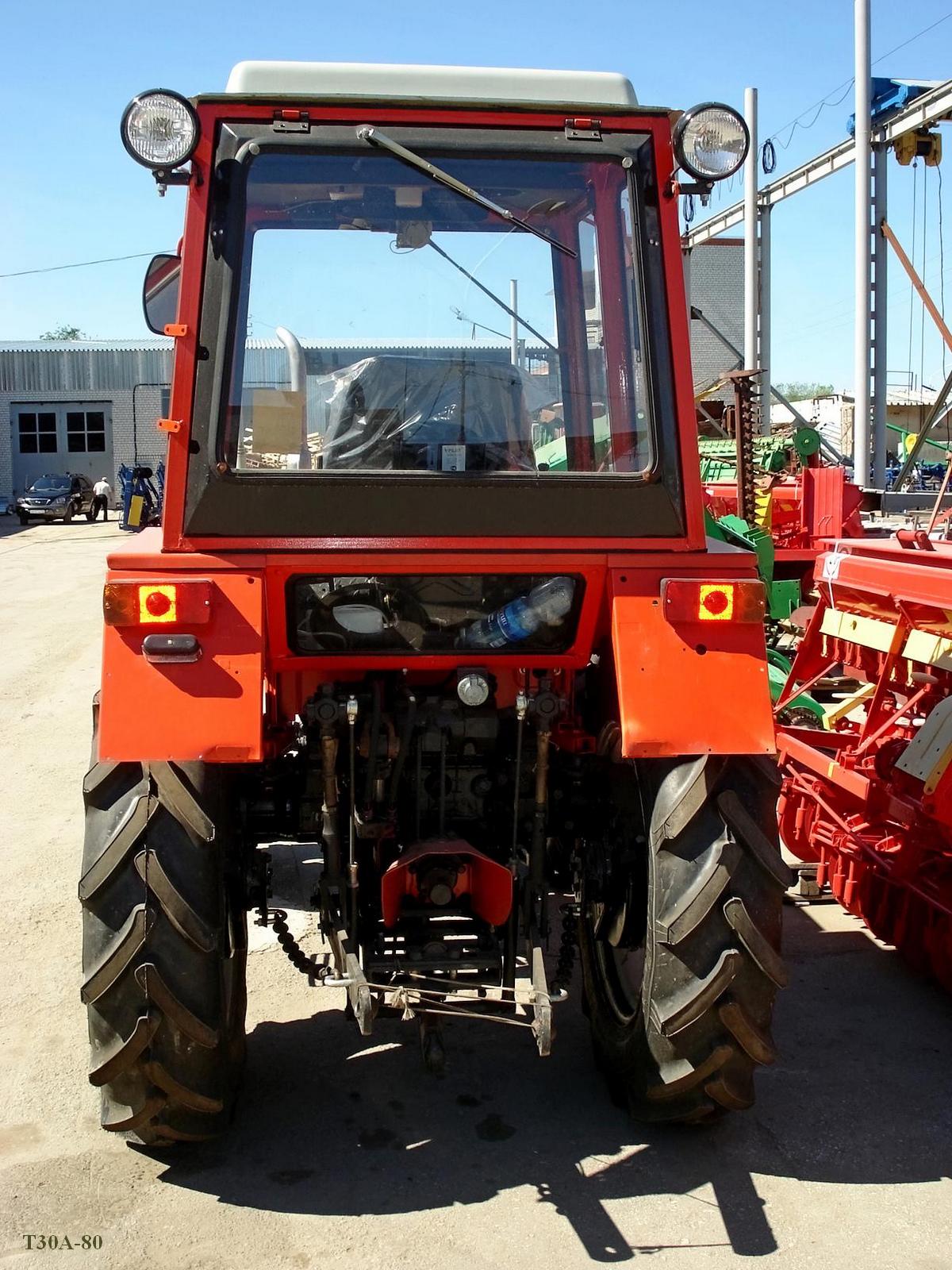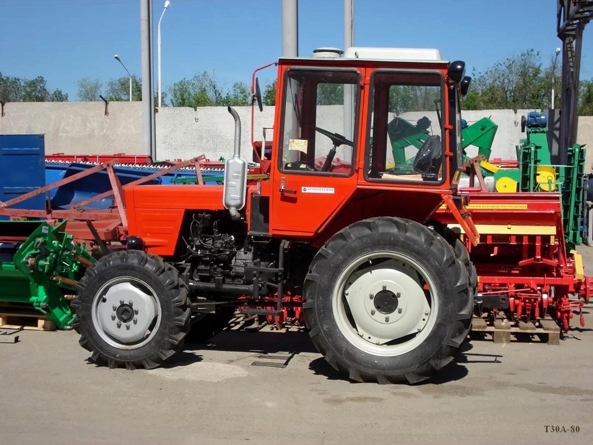 Эксплуатационные характеристики трактора Т-30А-80 позволяют агрегатировать его с существующими прицепными и навесными машинами более 25 наименований, в том числе с одноосными прицепами и погрузчиками, одно-, двух- и трехкорпусными плугами, зубовыми боронами, катками и культиваторами, зерновыми, зернотуковыми и зернотравяными сеялками, машинами для внесения минеральных удобрений, опрыскивателями, косилками, граблями и пресс-подборщиками, машинами для возделывания и уборки картофеля (фрезами, сажалками, культиваторами-окучниками, ботводробилками, копателями), льноуборочными машинами (теребилками, ворошилками, подборщиками, прицепными молотилками), раздатчиками кормов на животноводческих фермах.