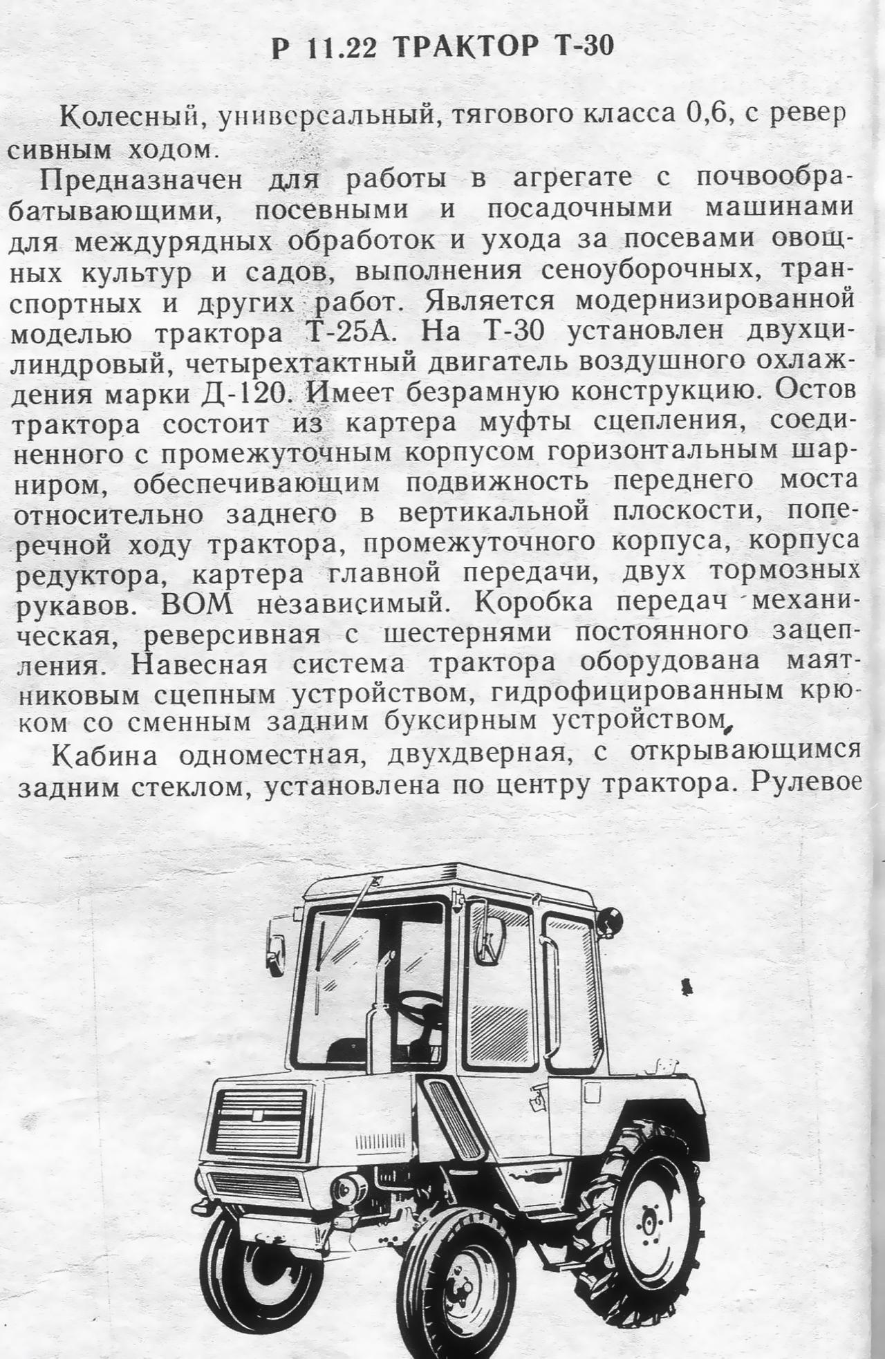 Технические характеристики трактора Т-30.