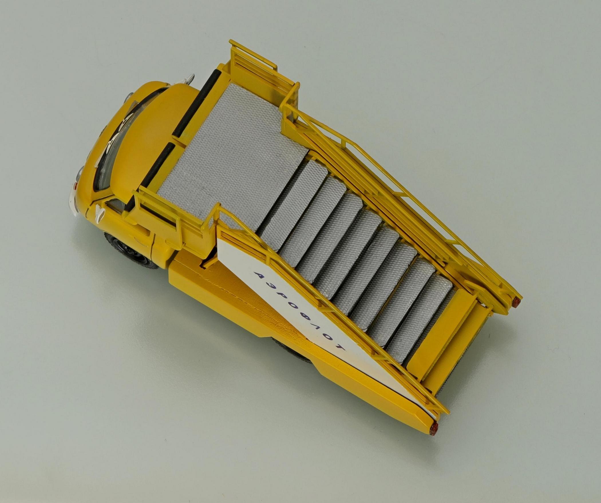 Ступени лестницы в ночное время освещаются плафонами. Для улучшения обзора при подъезде трапа к самолету крыша передней части кабины остеклена. На ней установлена фара для освещения места соприкосновения выдвижной лестницы с самолетом.