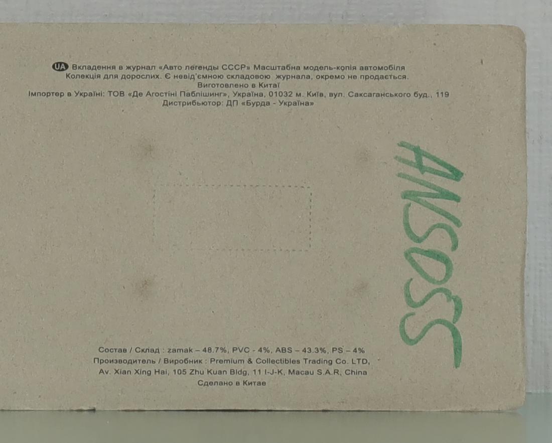 Производитель модели: Мастер Яценко Е. А. г. Краснодар, надстройка Max-Models MAXP29, ш. УАЗ 3303 Т12.02 DeA ANS055 Китай 2013 год, сделано в России в 2018 году.