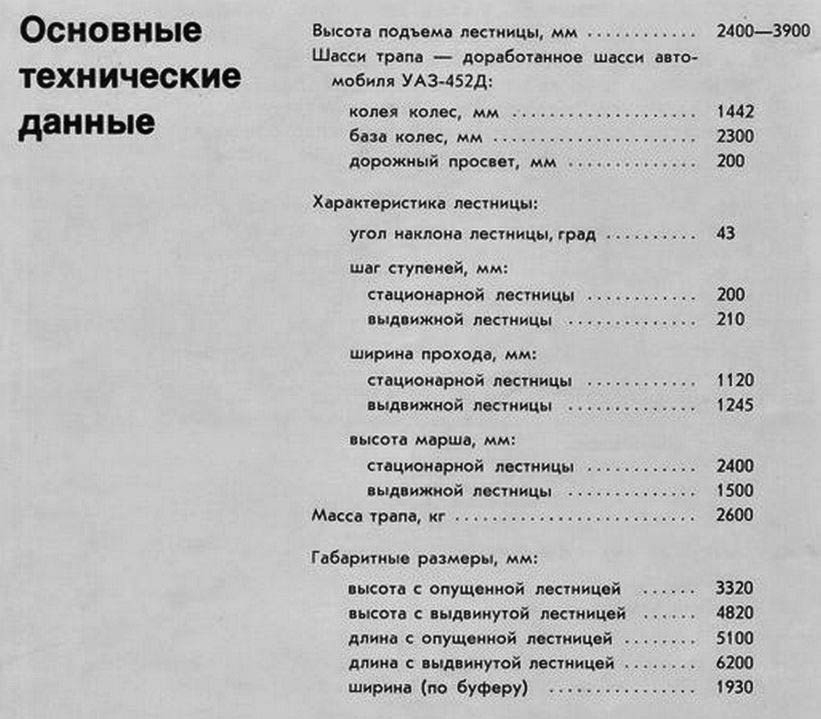Устройство основных агрегатов. Лестница трапа состоит из двух частей: стационарной и выдвижной. Стационарная часть лестницы имеет 11 неподвижных ступеней и одну откидную. Настил ступеней выполнен из стальных листов и покрыт рифленой резиной. Нижняя его часть закрыта съемными панелями. Стационарная часть крепится к раме шасси.