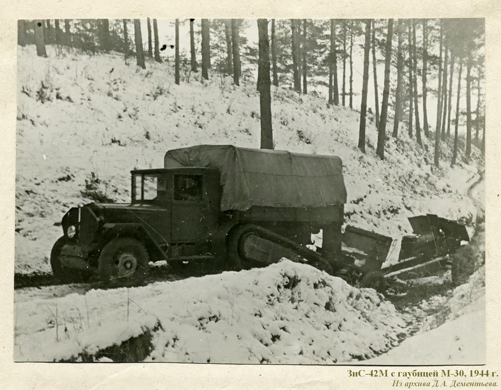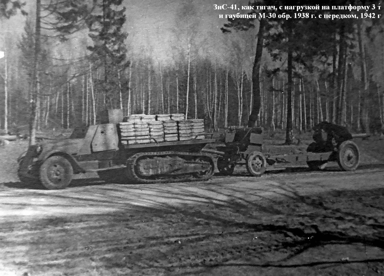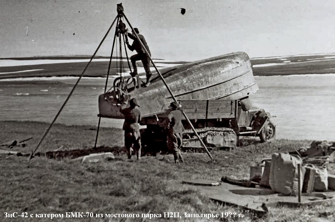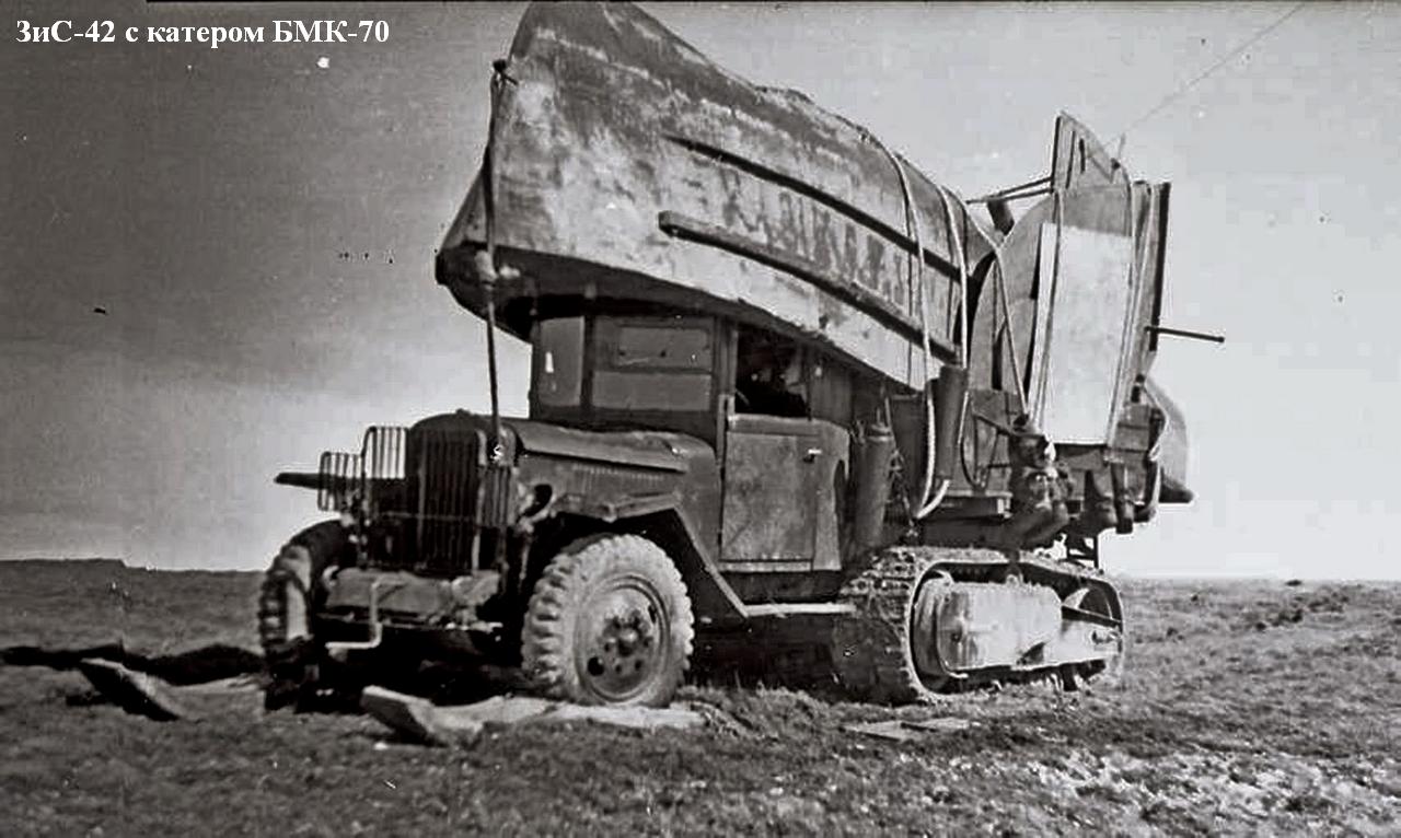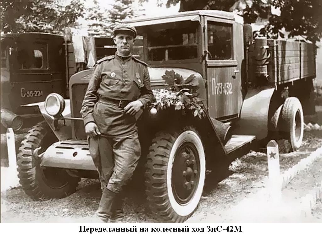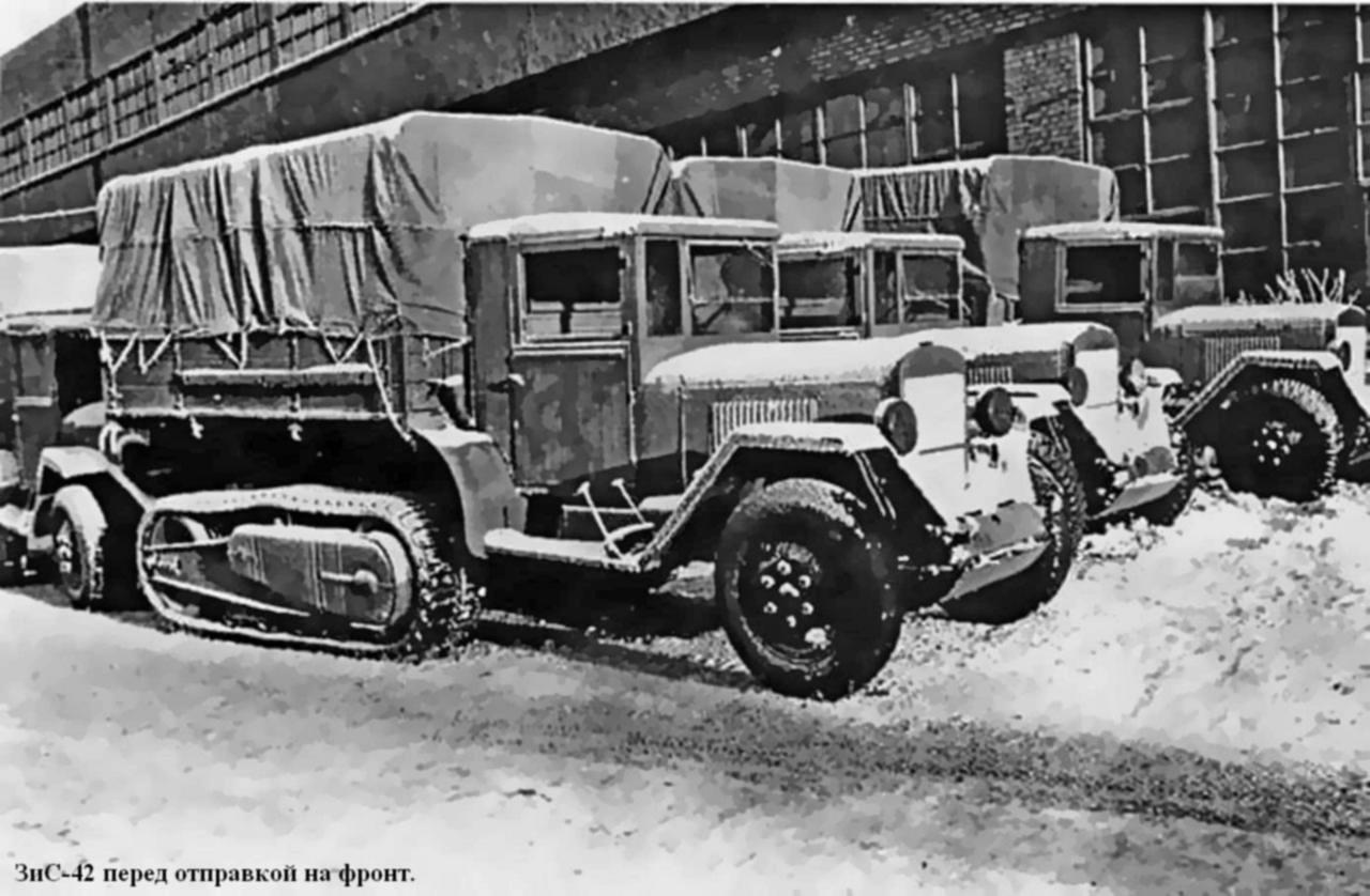 ЗиС-42 или ЗиС-42М полугусеничный бортовой грузовик повышенной проходимости, грузоподъемность: по грунту 2.25 тонн, по снегу 1.75 тонн, прицеп до 3 тонн, мест: в кабине 2, в кузове 9, вес без груза 5.13 тонн, максимальная скорость 35/45 км/час.