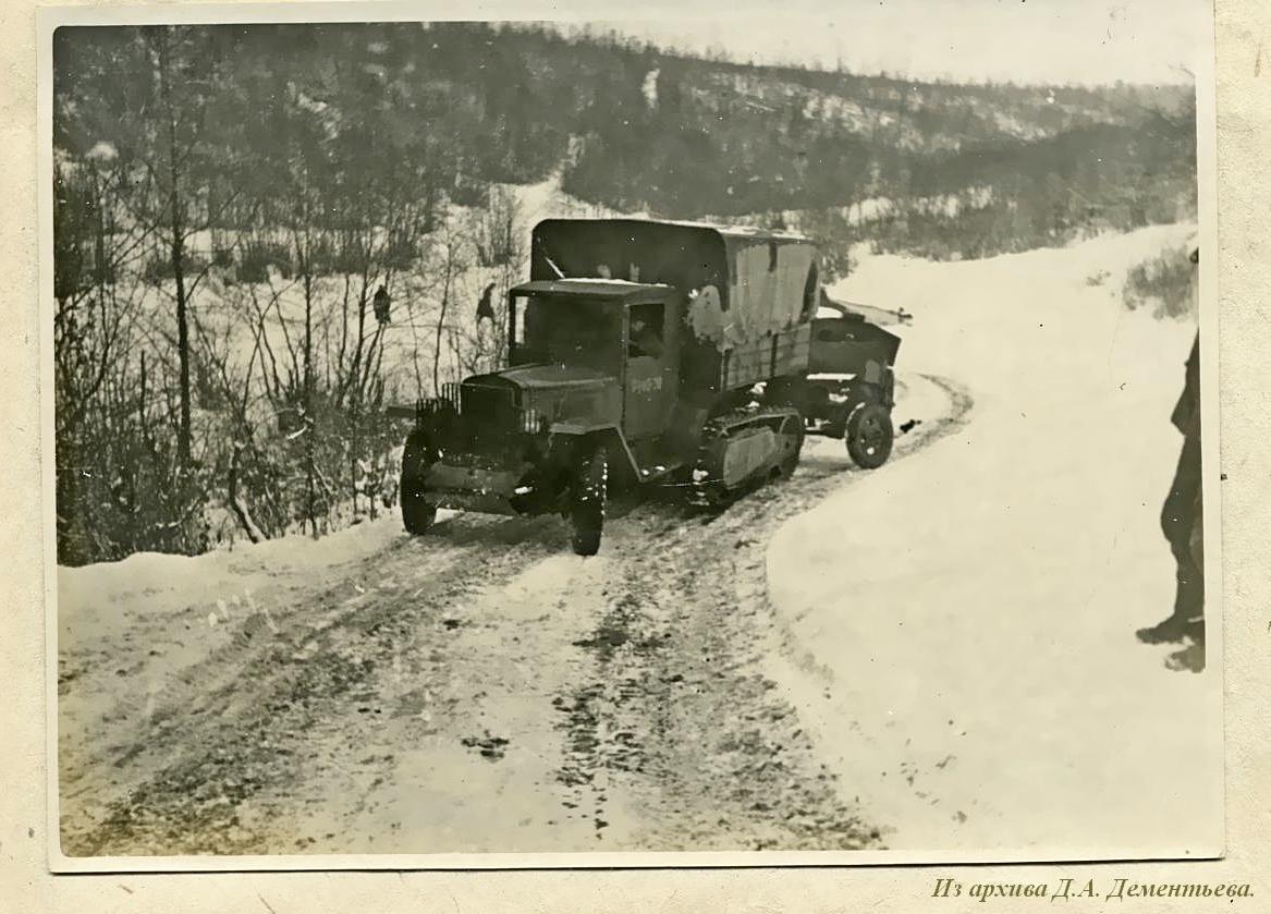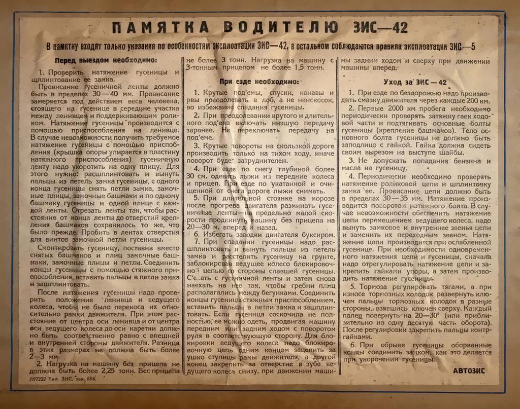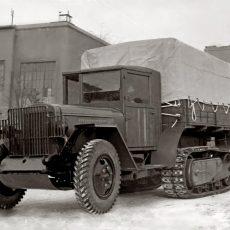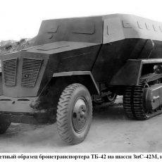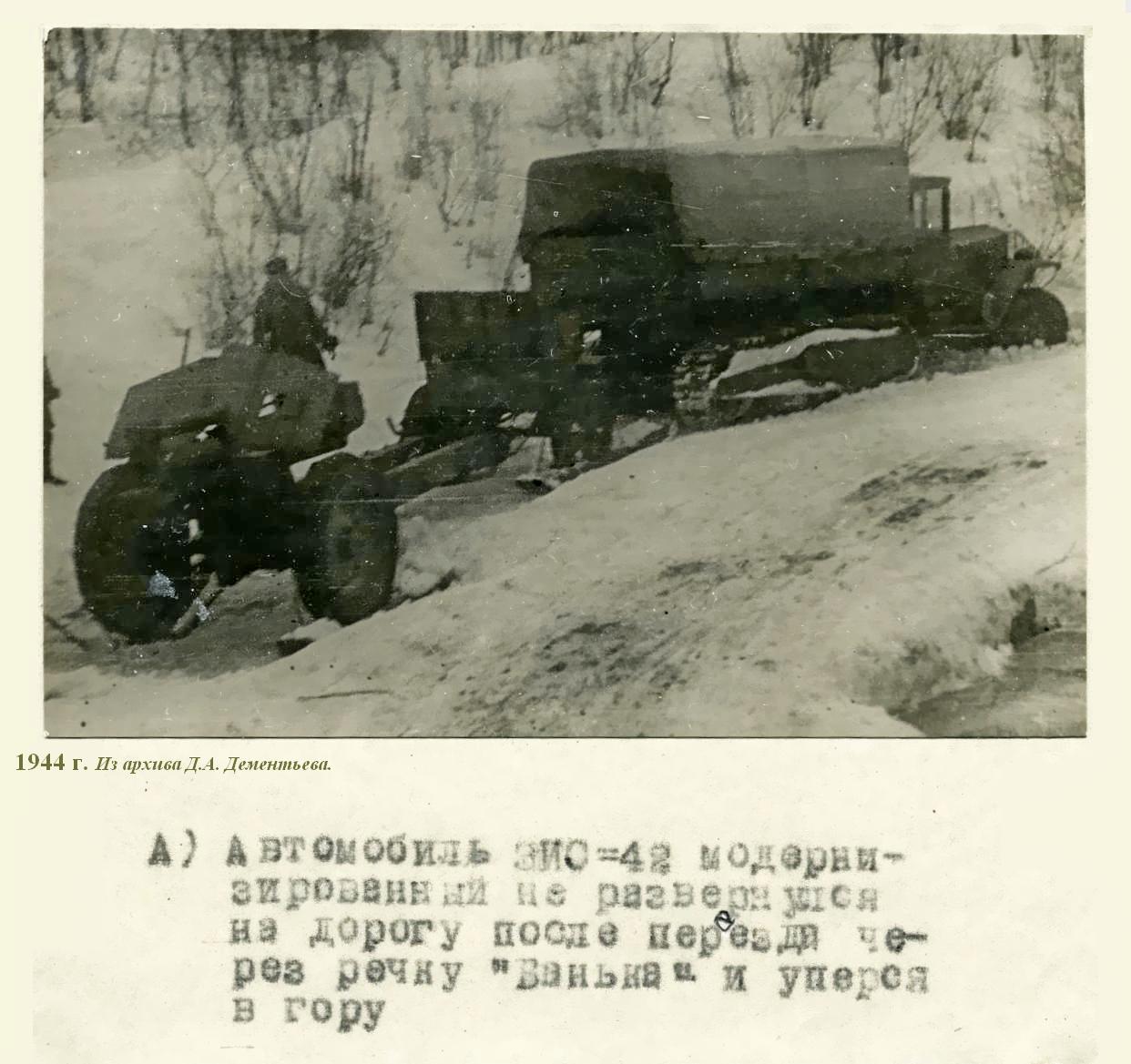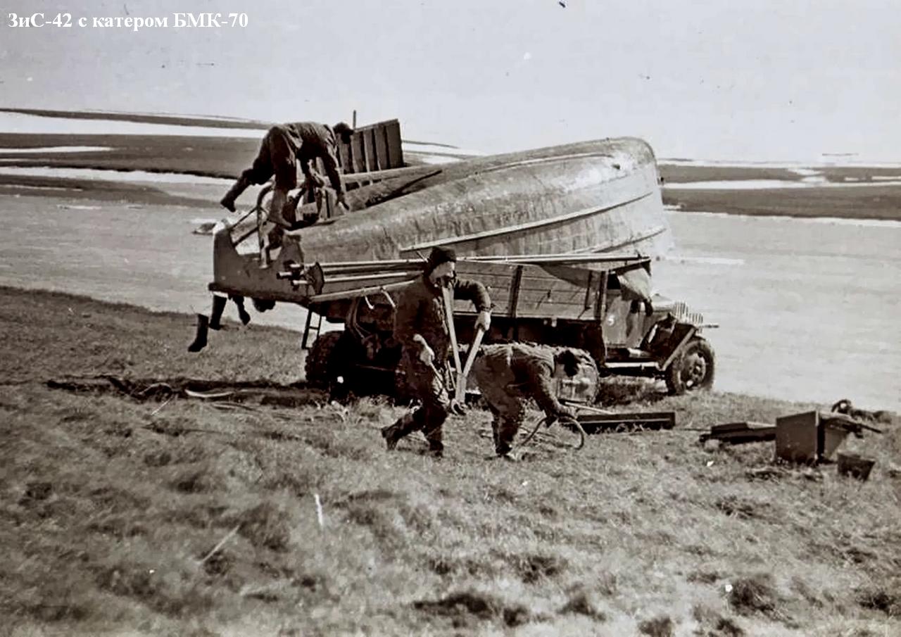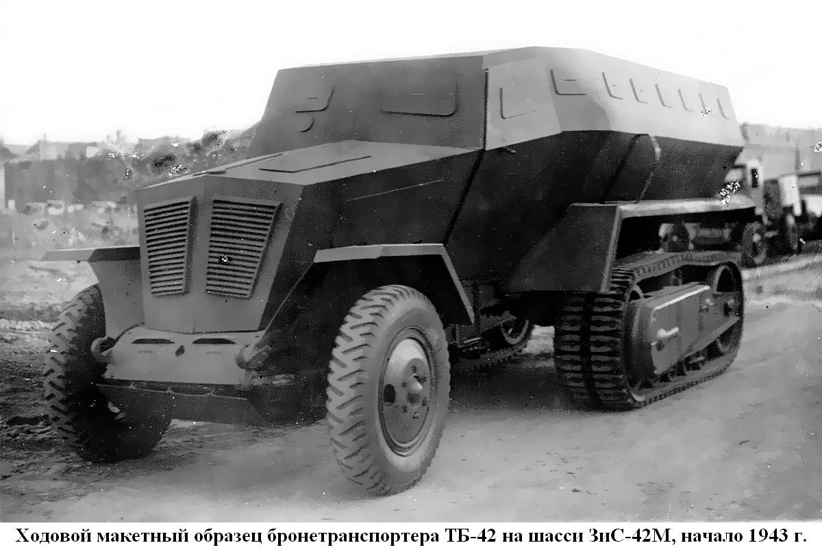 ЗиС-42 или ЗиС-42М полугусеничный бортовой грузовик повышенной проходимости, грузоподъемность: по грунту 2.25 тонн, по снегу 1.75 тонн, прицеп до 3 тонн, мест: в кабине 2, в кузове 9, вес без груза 5.13 тонн, максимальная скорость 35/45 км/час.