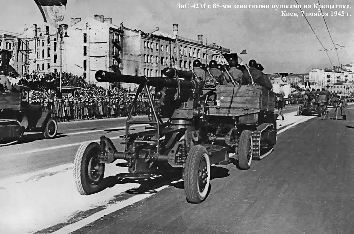 Но начатые ранее работы по их модернизации не прекращались. Осенью 1943 года удалось спроектировать и построить усовершенствованный вариант машины, условно названный ЗиС-42М ("модернизированный"). На ЗиС-42М сделали очередную попытку улучшить гусеничный движитель. Для стабилизации длины гусеничных лент их перед монтажом ведущих накладок и плиц стали подвергать многодневной предварительной вытяжке в вертикальном положении усилием около 2000 кгс на каждую. В результате уменьшилась эксплуатационная вытяжка гусениц и стал более стабильным шаг их зацепления. Обрыв лент резко сократился, хотя совсем не исчез. Были введены разрезные каретки бегунков с добавочной рессорой для обоих балансиров в каждой. Несколько увеличился и клиренс под задним мостом. Ресурс колес и катков движителя повысили за счет расширения их резиновых ободов и усиления дисков. Более мощный двигатель ЗиС-5М (76 — 77 л.с.) с карбюратором МКЗ-10 несколько улучшил динамику машины, но недостаточную мощность двигателя по-прежнему восполнить было нечем. Производство применявшегося ранее на опытных образцах автобусного двигателя ЗиС-16 не возобновили ни в Миассе, ни на московском заводе. Несколько остававшихся там двигателей ЗиС-16 погоды не делали, хотя и породили легенды о более мощном двигателе ЗиС-42 (84 л.с.), которым якобы с 1944 года комплектовались тягачи ЗиС-42М, развивавшие при этом максимальную скорость до 45 км/ч.