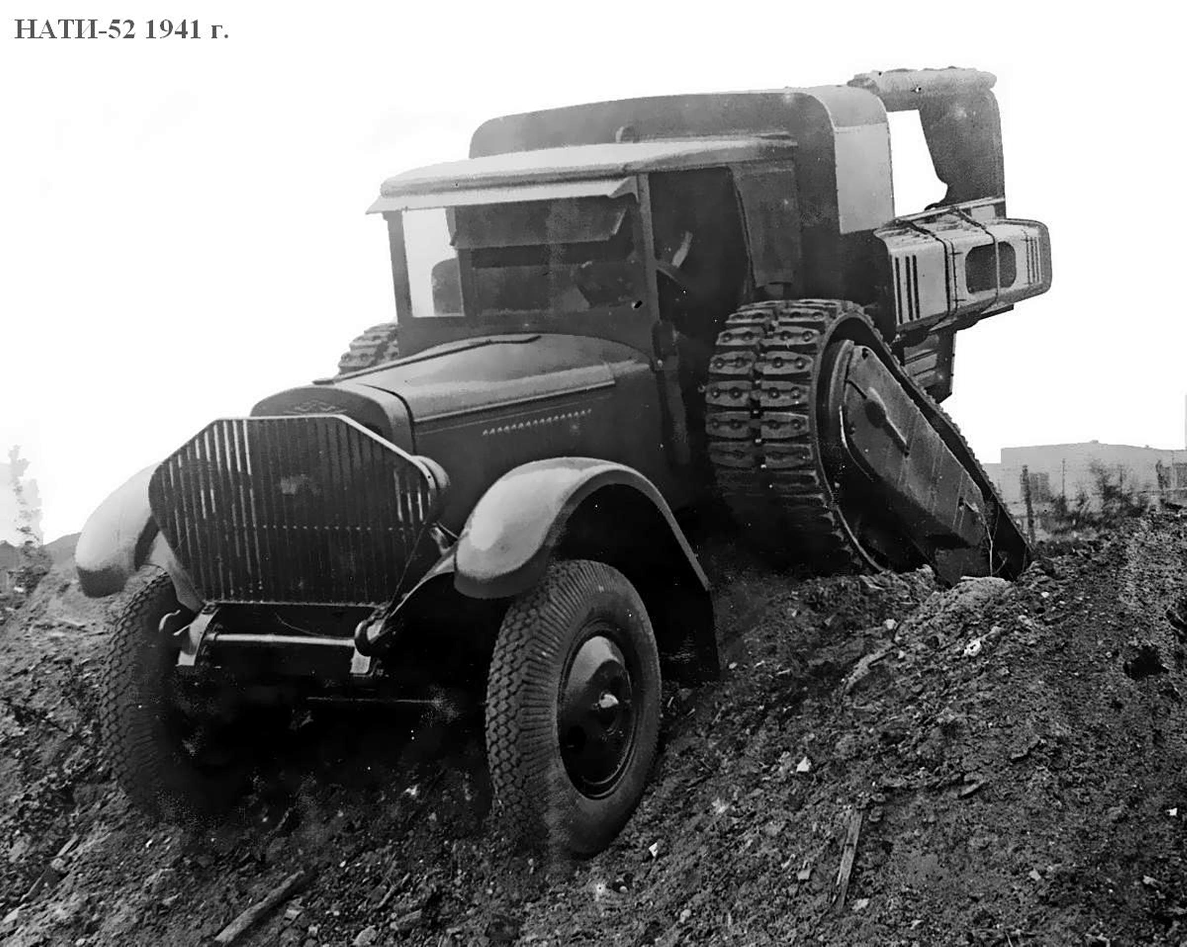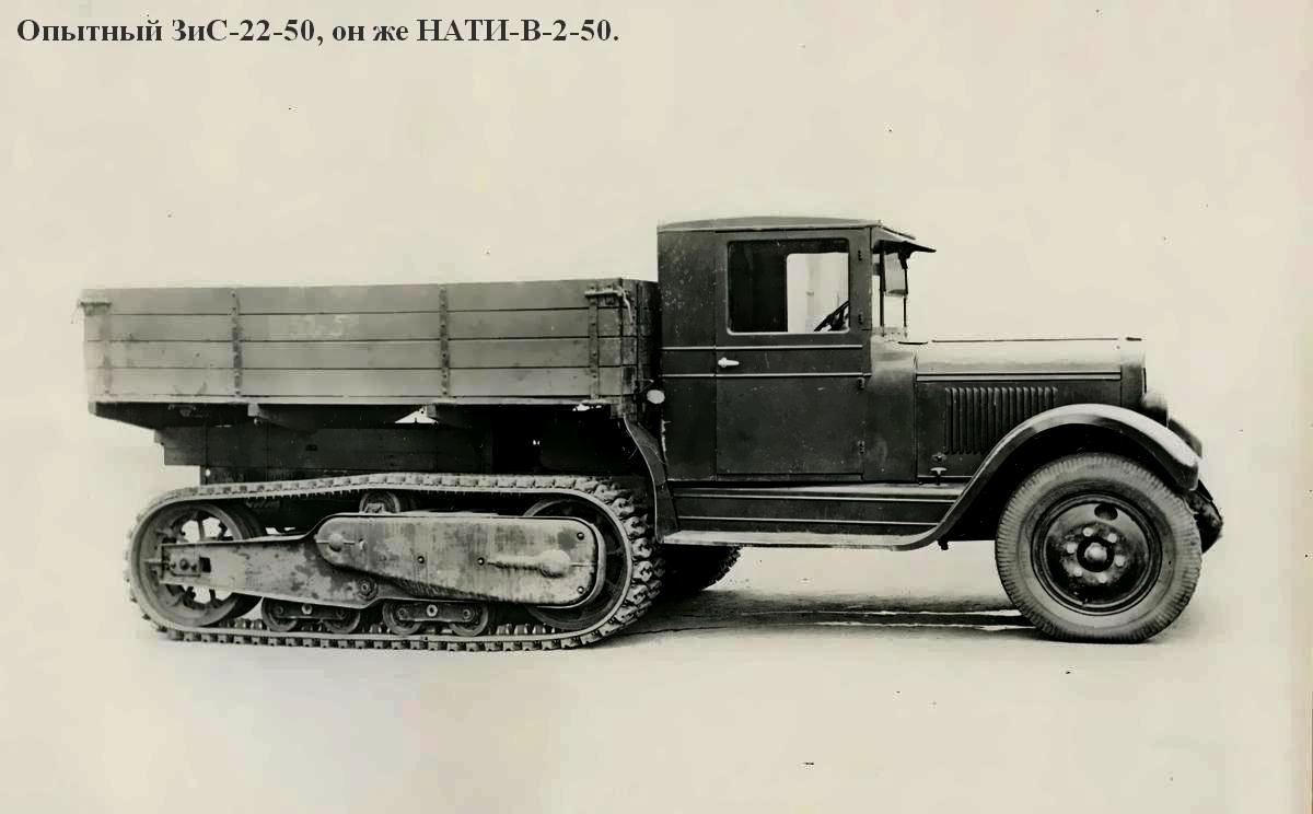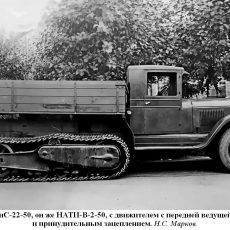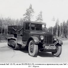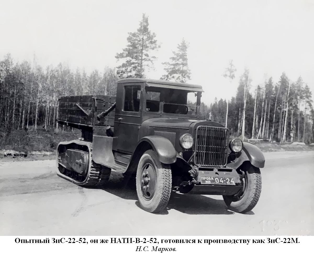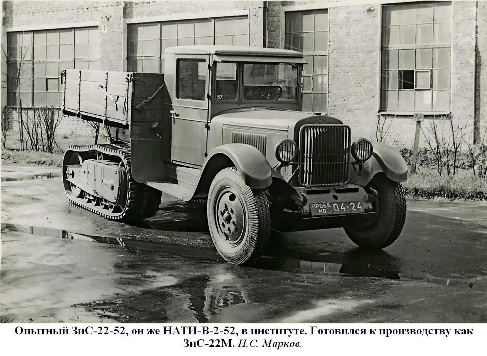- Полугусеничный автомобиль на шасси ЗиС-5 конструкции HATИ ЗиС-22-52, как средний автомобиль высокой проходимости по снегу, болотам, бездорожью, который может быть использован для перевозки грузов в бездорожных районах и как быстроходный артиллерийский тягач противотанковой и полковой артиллерии.