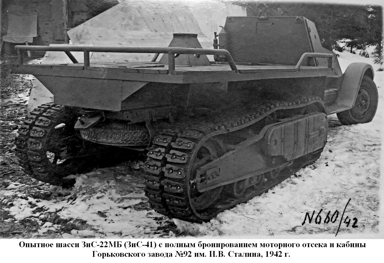 Доработанный для серии ЗиС-22-52 назвали ЗиС-22М, а затем ввиду значительных изменений в конструкции новый модельный номер "42". Зимой 1940–1941 гг. прошли испытания прототипа, а летом 1941 г. были организованы полигонные испытания эталона для серии. Из-за острого дефицита и недостаточной надежности двигателя ЗиС-16, к тому же требовавшего для своей нормальной работы дорогого высокооктанового бензина, пришлось вернуться к использованию обычного двигателя ЗиС-5. Кроме штатного бензобака ЗиС-5 (60 л), расположенного под сиденьем, дополнительно под платформой разместили еще три бака — всего на 300 л. Предусматривалось оборудование платформы боковыми скамейками и тентом (внедрено позже).